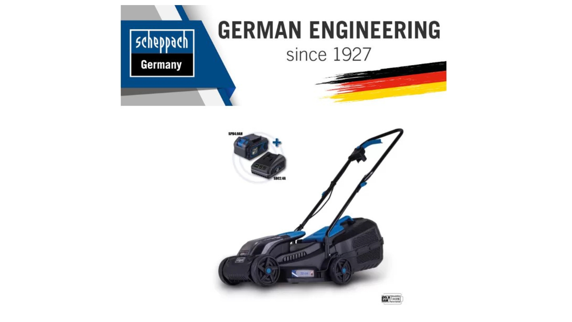 Come parte della serie Scheppach IXES da 20 volt, tutte le batterie e i caricabatterie della serie di sistemi possono essere combinati con il tosaerba.