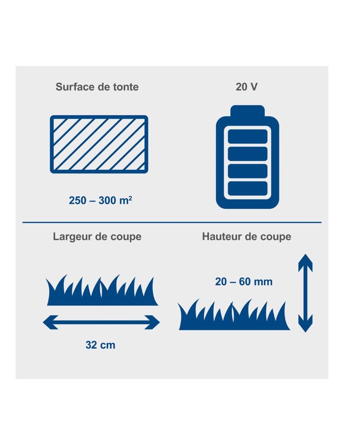 - Potente rasaerba a batteria con larghezza di taglio di 32 cm e funzione 3 in 1: falciatura, raccolta e bordatura del prato