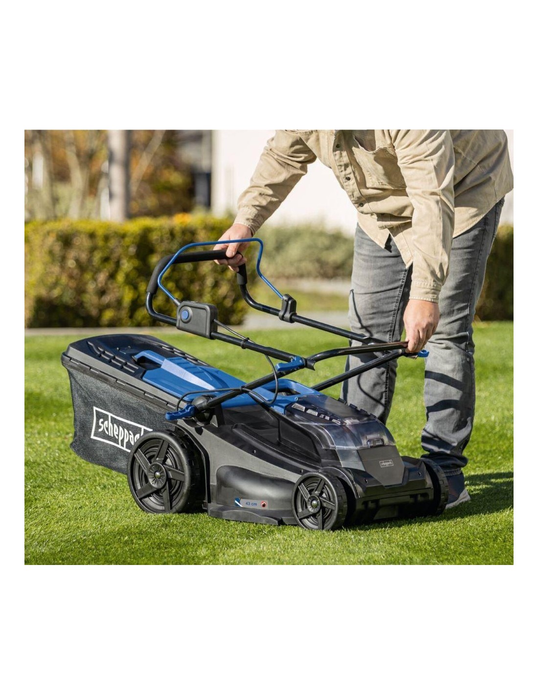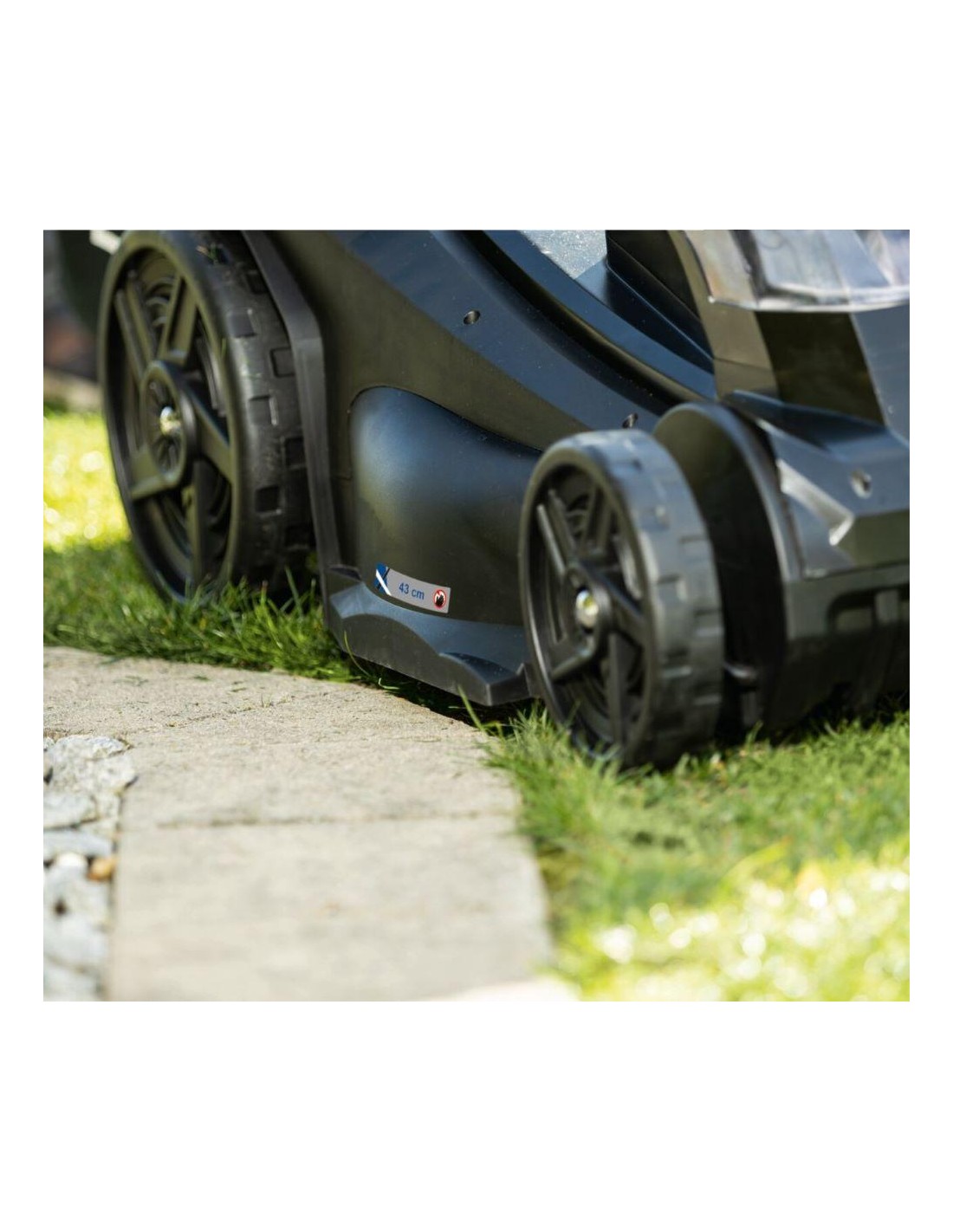 - Potente rasaerba a batteria con larghezza di taglio di 43 cm con funzione 4 in 1: falciatura, raccolta, riciclaggio (mulching), bordatura del prato