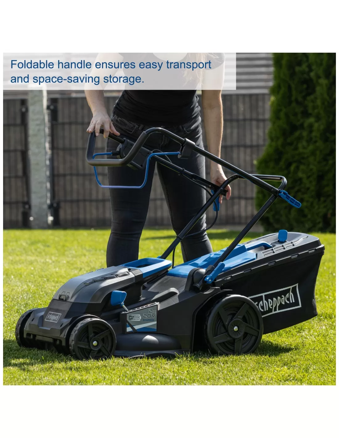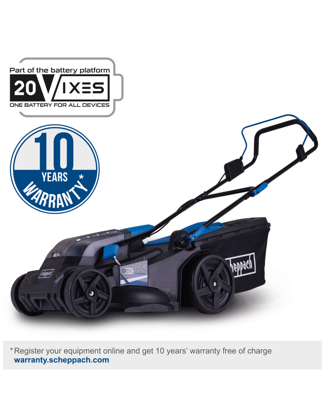 - Lavoro senza fili con la serie Scheppach IXES da 20 volt: tutte le batterie e i caricabatterie della serie di sistemi possono essere combinati con il rasaerba a batteria