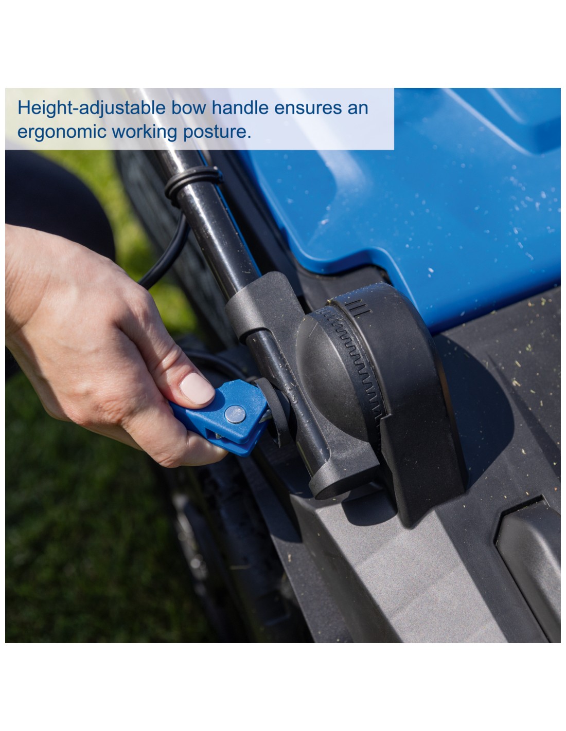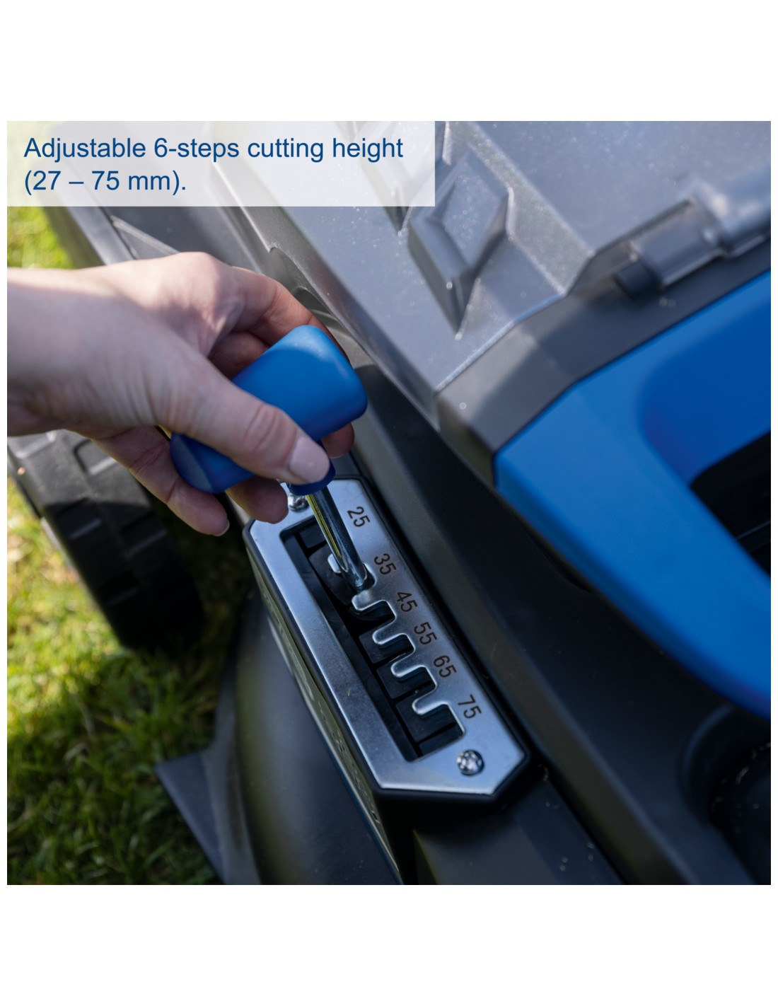 - Regolazione centrale dell'altezza di taglio su 6 livelli da 25 a 75 mm