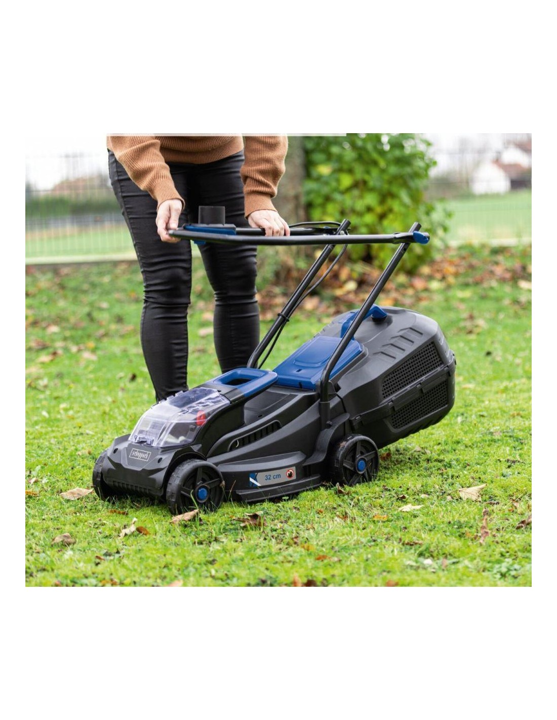 - Potente rasaerba a batteria con larghezza di taglio di 32 cm e funzione 4 in 1: falciatura, raccolta, riciclaggio (mulching), bordatura del prato