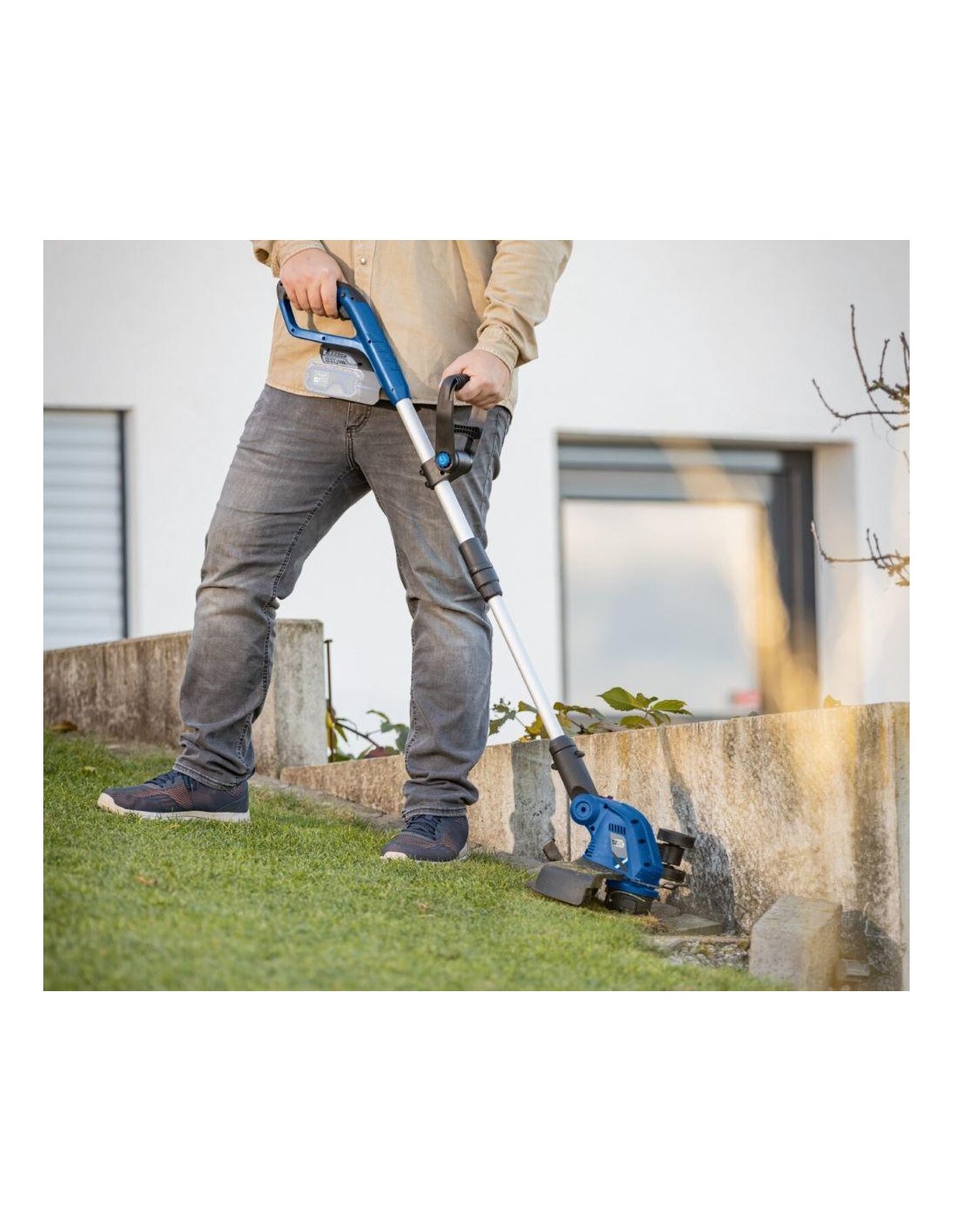 Il tagliabordi a batteria Scheppach C-LT300-X è un potente aiuto per il giardino di casa ed è ideale per spazi ristretti o per tagliare i bordi del prato. Con l'aiuto dell'asta di guida telescopica e regolabile, l'altezza può essere adattata a piacimento per la propria altezza, consentendo così un lavoro più comodo ed efficace. La testa del motore può essere inclinata e ruotata di 90°, in modo da poter lavorare facilmente anche superfici verticali o bordi del prato.