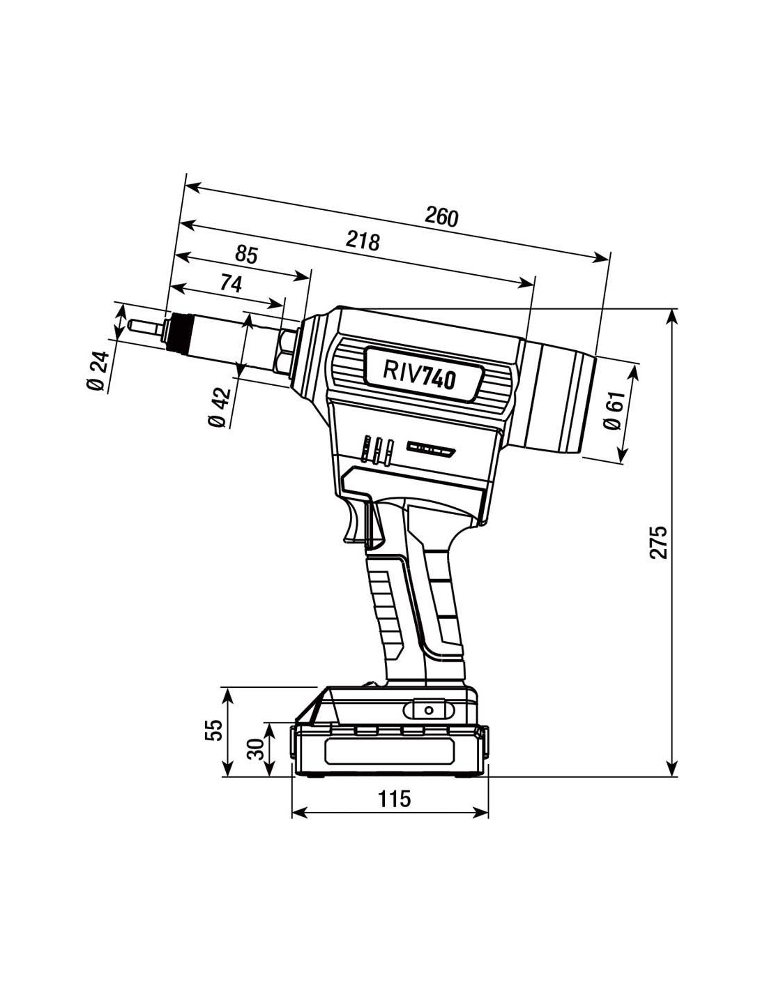 Rivettatrice a batteria dotata di potente ed affidabile motore Brushless e di batteria di lunga durata, RIV740 fa della semplicità ed affidabilità il suo punto di forza, offrendo al cliente una soluzione a valore aggiunto in grado di coprire un ampio campo di applicazione, per inserti da M3 a M12.