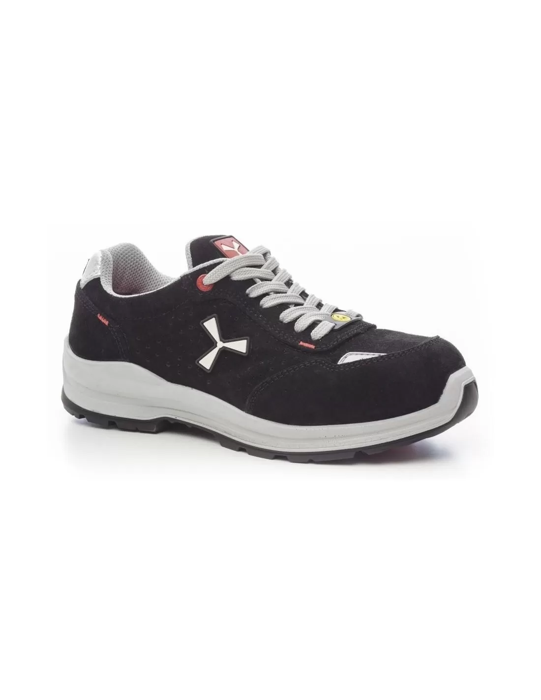 Scarpa di sicurezza antistatica bassa da donna, tomaia in crosta traforata idrorepellente e traspirante, fodera interna (per tutta la superficie interna) traspirante e resistente all’abrasione, 1+1 occhielli metalfree e 6+6 fori passalacci rinforzati, inserti riflettenti nel paratacco e nel lato esterno della punta, puntale in alluminio pressofuso, plantare estraibile Ortholite X40 016, soletta in lamina tessile certificata antiperforazione, cambrione anti-torsione, sottopuntale a ferro di cavallo, intersuola in poliuretano ultraleggero, ammortizzatore MASTER BALANCE in PU polietere ad alta tenacità e densità bilanciata, suola XTRAIL GRIP in TPU con paratacco e parapunta.
