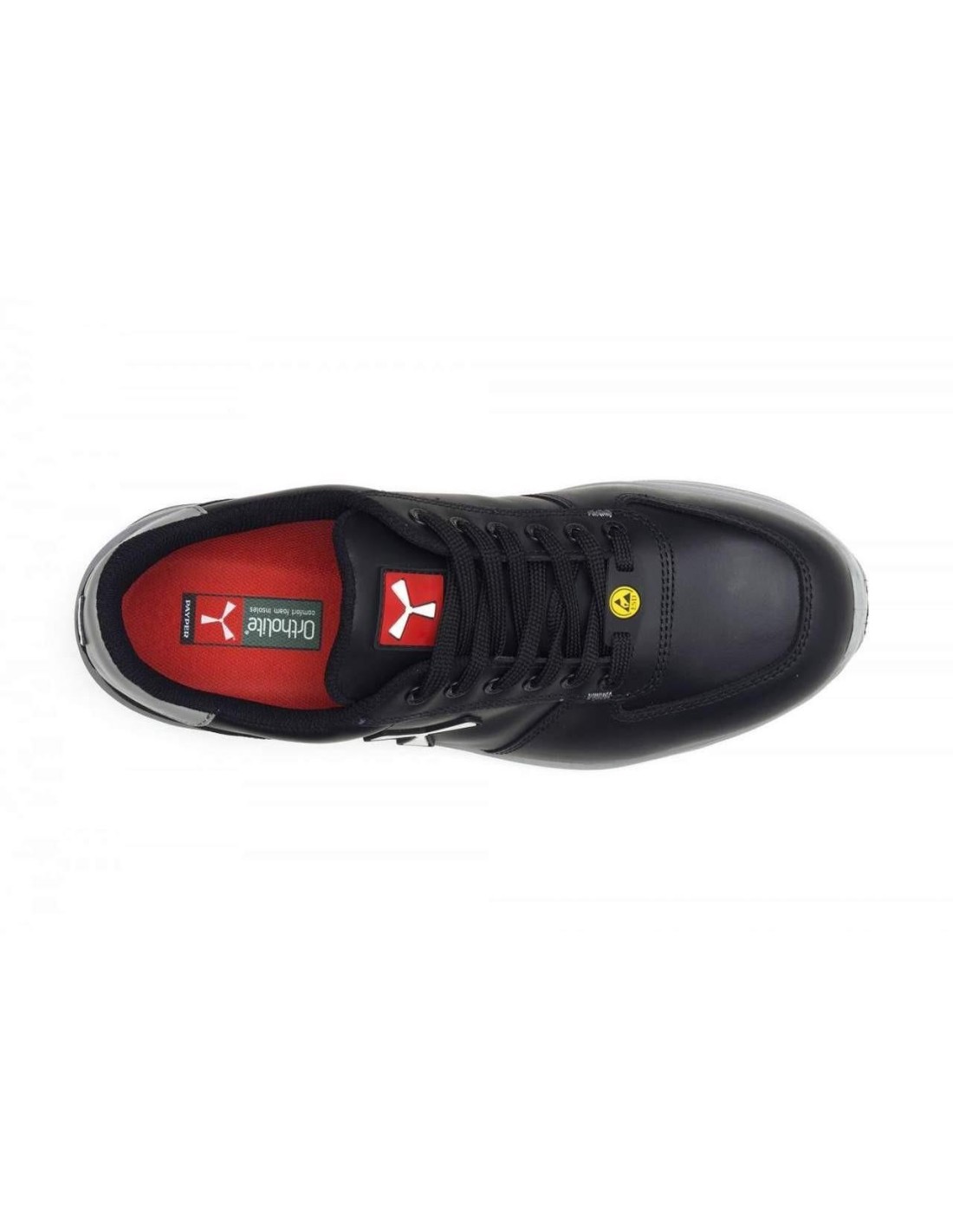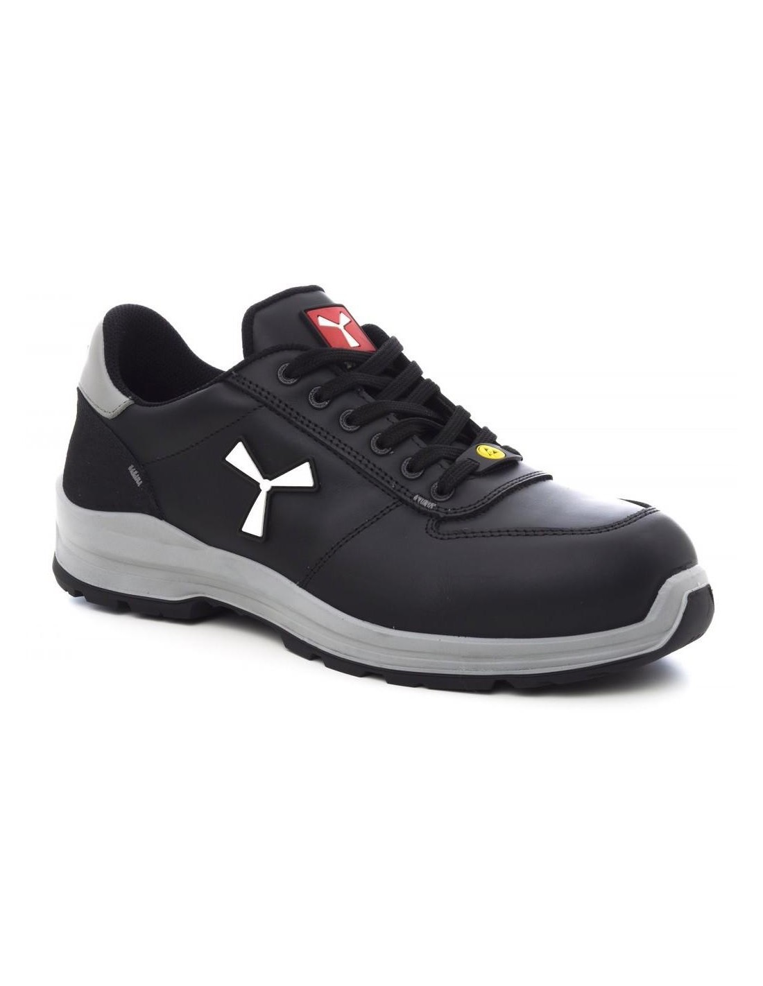 Scarpa di sicurezza bassa da uomo, tomaia in pelle idrorepellente e traspirante, fodera interna (per tutta la superficie interna) traspirante e resistente all'abrasione, 6+6 occhielli metalfree, paratacco in grana pampas con inserto riflettente, puntale in alluminio pressofuso, plantare estraibile Ortholite X40 016 ESD, soletta in lamina tessile certificata antiperforazione, cambrione anti-torsione, sottopuntale a ferro di cavallo, intersuola in poliuretano ultraleggero ESD, ammortizzatore MASTER BALANCE in PU polietere ad alta