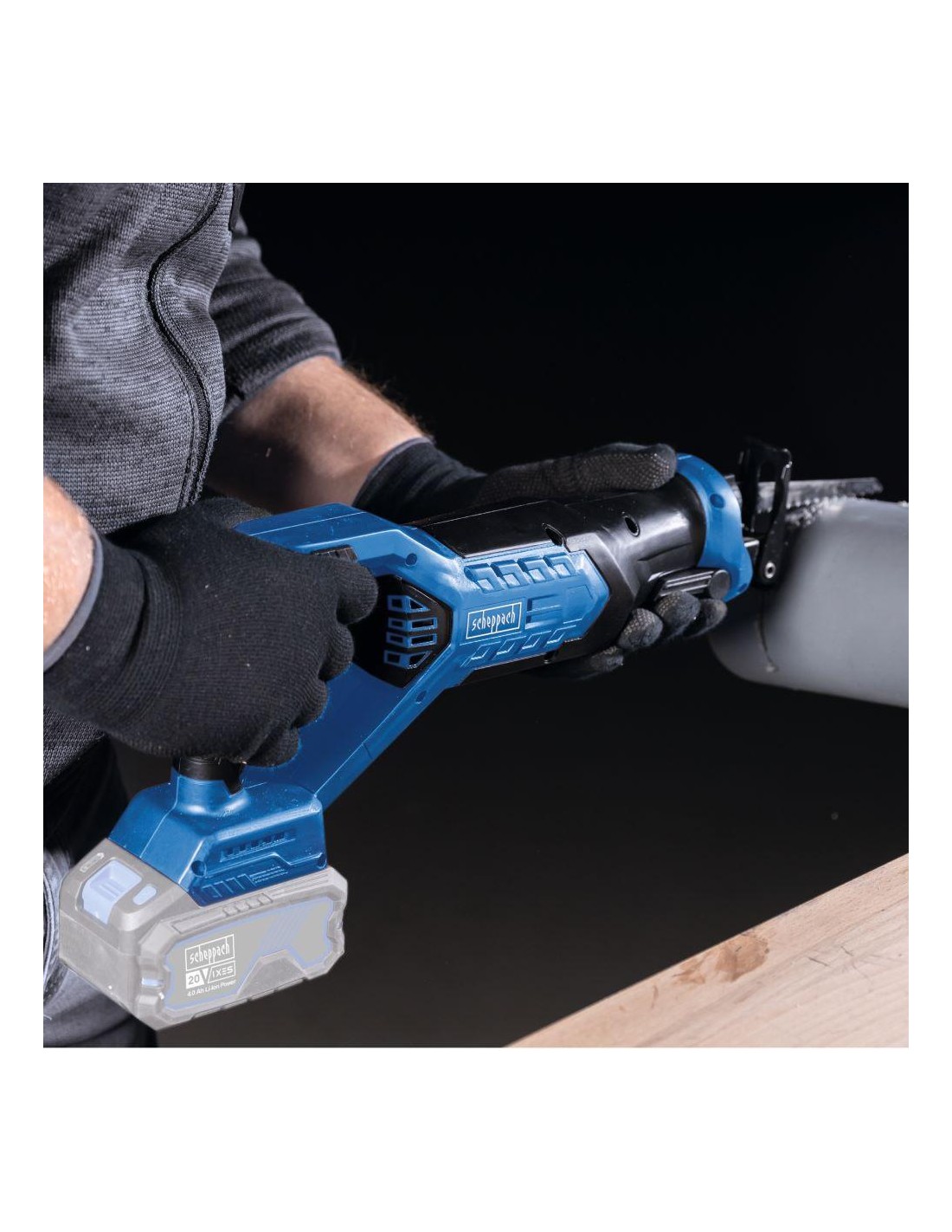 - Lavoro senza fili con la serie Scheppach IXES da 20 volt: tutte le batterie e i caricabatterie della serie possono essere combinati con la sega alternativa a batteria