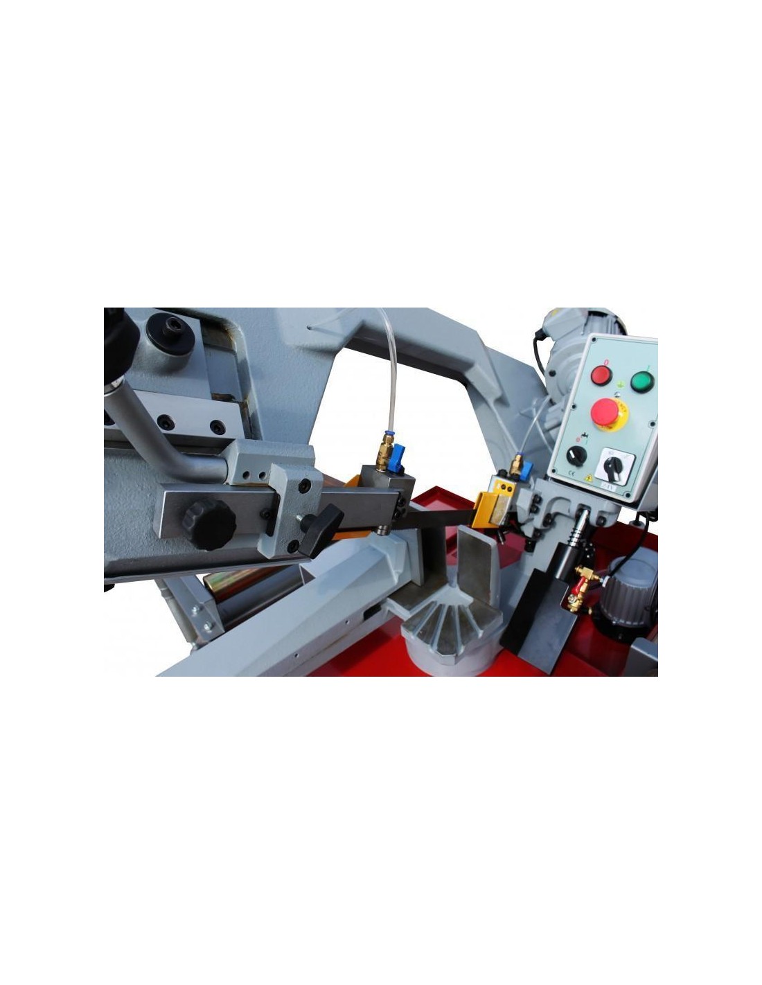Arresto automatico alla fine del taglioRobusta custodia in ghisa con leva a rilascio rapido e tappo