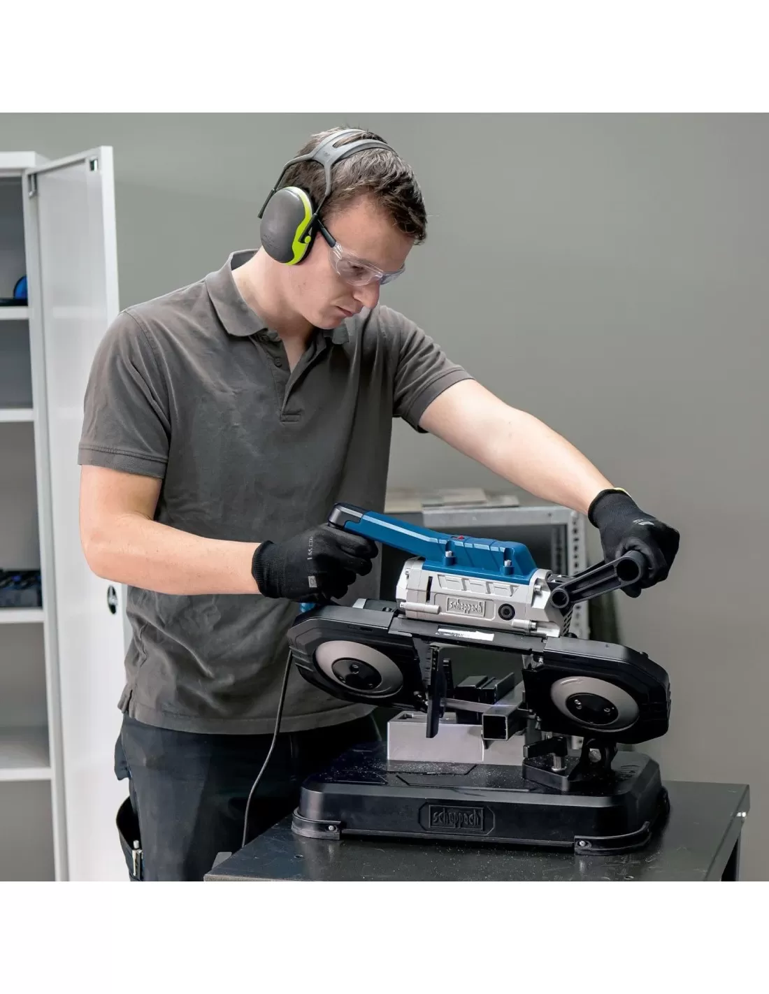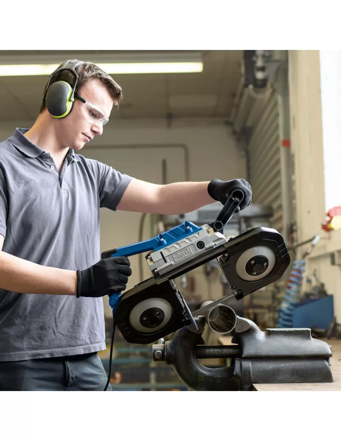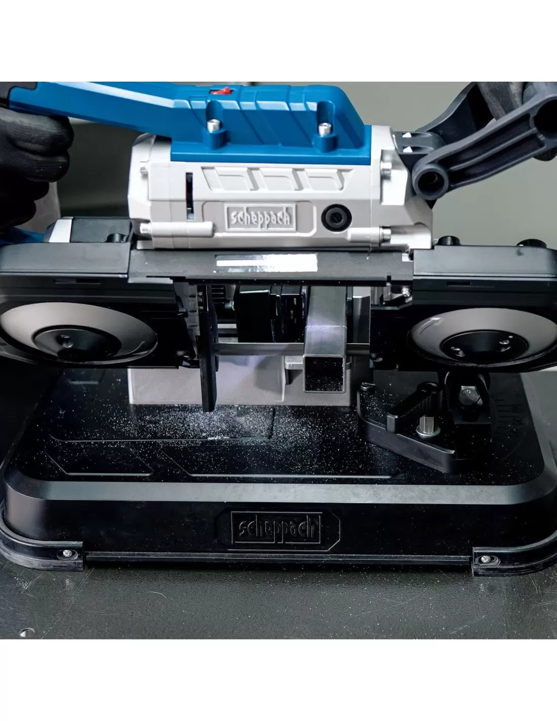 La sega a nastro per metallo MBS1200 di Scheppach può essere utilizzata in vari modi. Può essere utilizzato sia a mano che montato saldamente su un telaio.