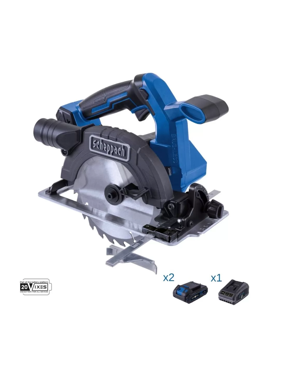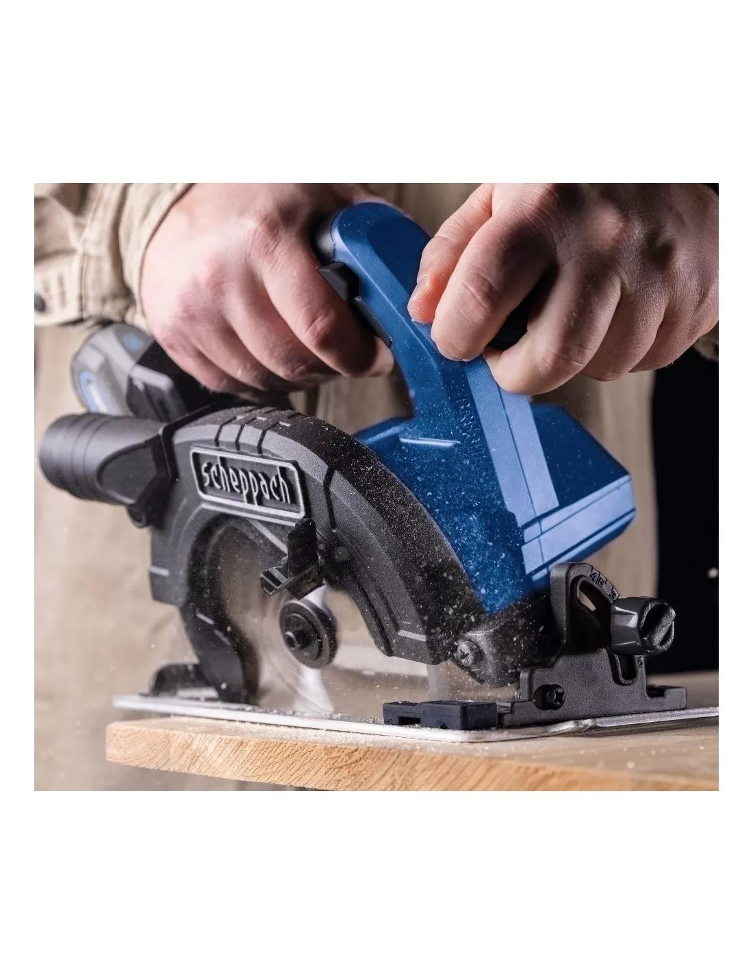 - Lavoro senza fili con la serie Scheppach IXES da 20 volt: tutte le batterie e i caricabatterie della serie possono essere combinati con la sega circolare manuale a batteria