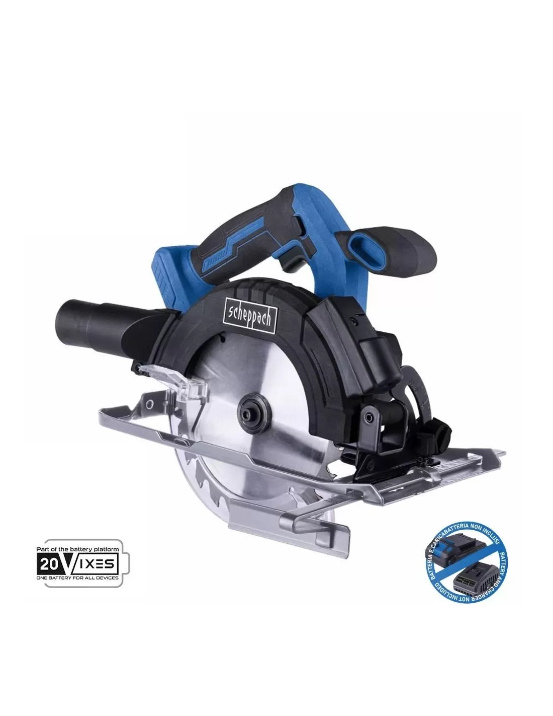 - Lavoro senza fili con la serie Scheppach IXES da 20 volt: tutte le batterie e i caricabatterie della serie possono essere combinati con la sega circolare manuale a batteria