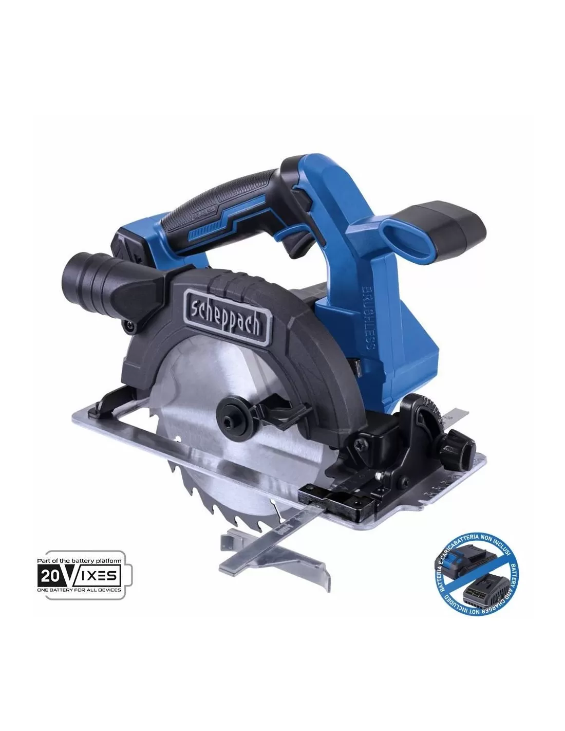 - Lavoro senza fili con la serie Scheppach IXES da 20 volt: tutte le batterie e i caricabatterie della serie possono essere combinati con la sega circolare manuale a batteria