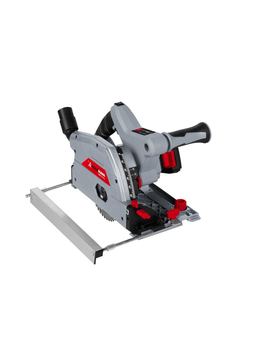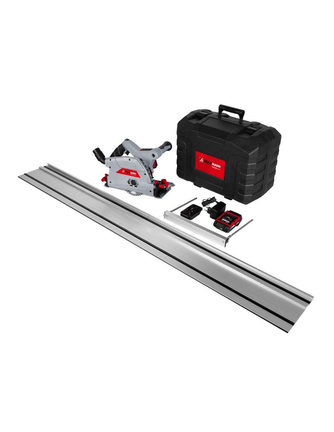 Set di seghe di ricambio HOLZMANN TAS140AKKU con 2 batterie/caricabatterie/binario di guida, guida parallela e scatola BMC (spazio per batterie/guida parallela/caricabatterie e macchina). Ricarica e vai!