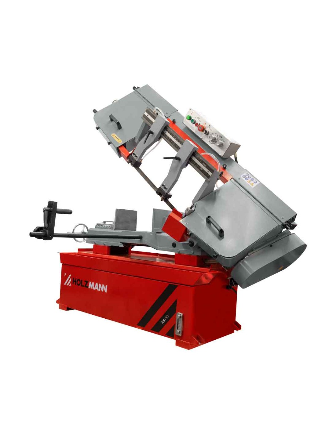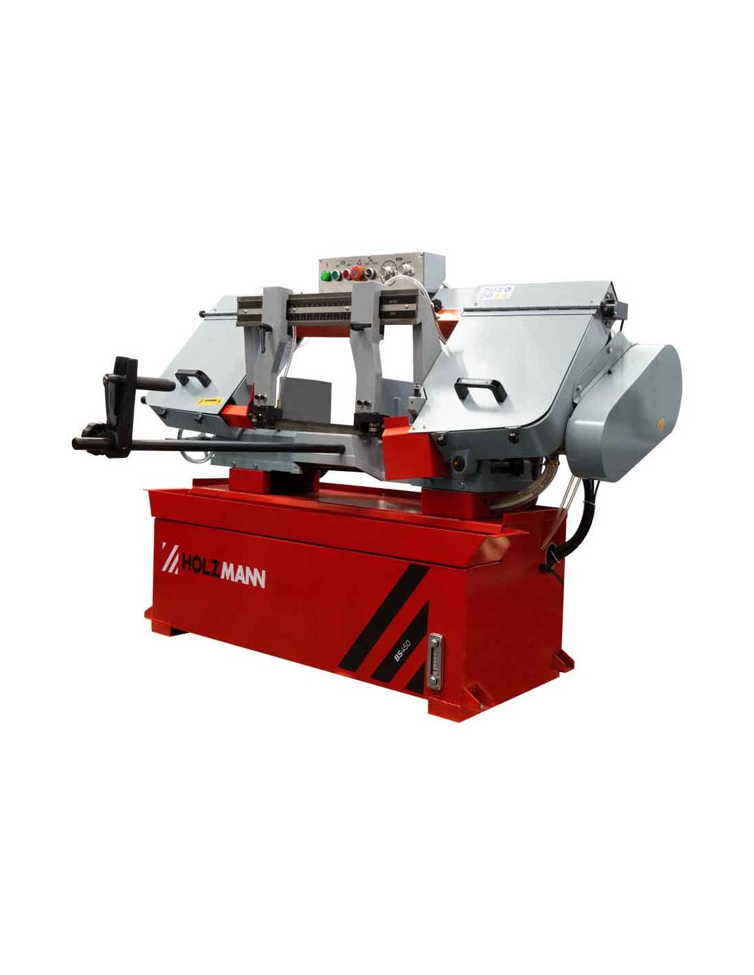 La sega a nastro per metalli HOLZMANN BS450 è caratterizzata da una struttura solida e da un potente motore a cinghia. Quattro velocità della lama sono regolabili tramite l'inversione della cinghia (25, 40, 51 e 71 m/min). È possibile raggiungere un'ampia capacità di taglio di 450 x 200 mm.