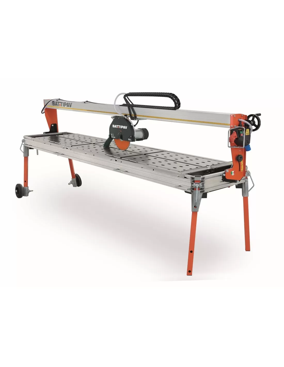 Trave in alluminio estruso ad alta resistenza alla torsione e provvista di guide cuscinetti in acciao inox intercambiabili. Il carrello gruppo motore scorre sulla trave mediante otto cuscinetti a sfera, dei quali quattro lavorano sempre in perpendicolare rispetto alla trave: effettua i tagli con avanzamento manuale del gruppo motore.