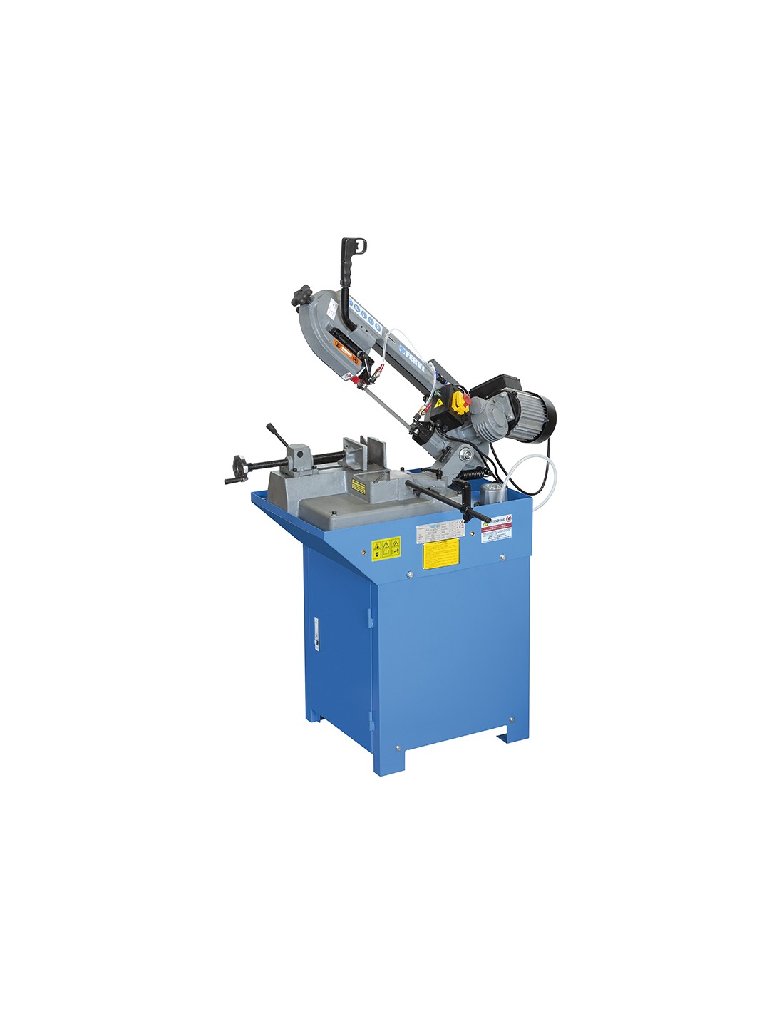 Segatrice a nastro per metalli, con sistema di refrigerazione, morsa rapida e base con vano portautensili.