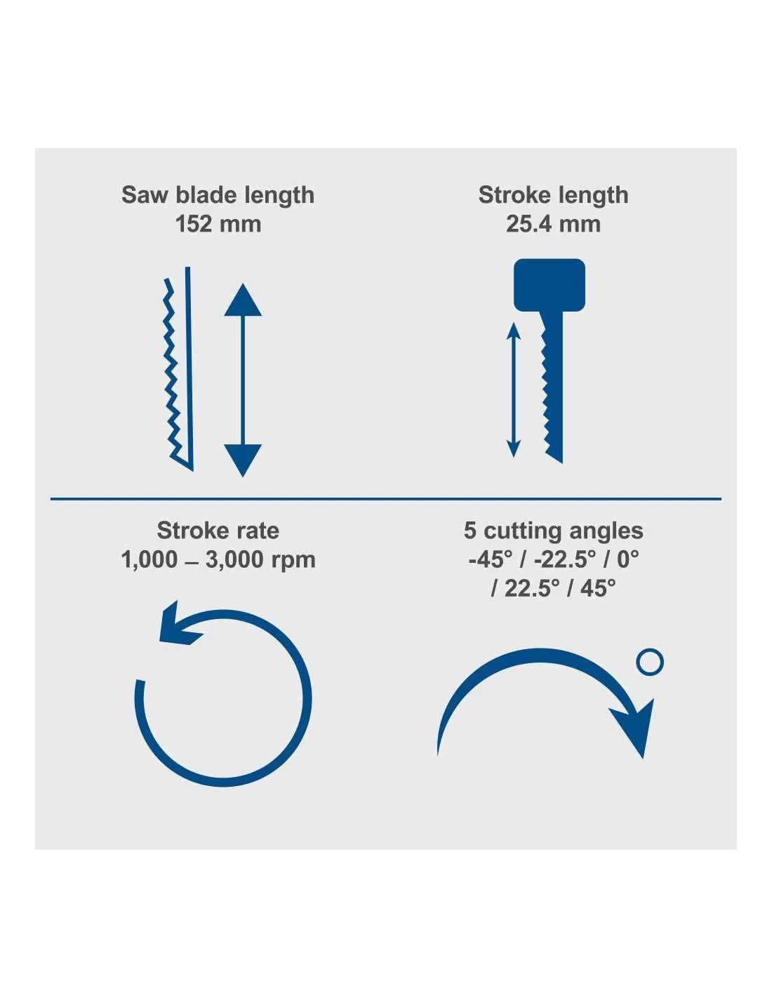 - Avanzamento rapido del taglio grazie alla corsa del pendolo regolabile in 3 fasi e alla regolazione fine del taglio