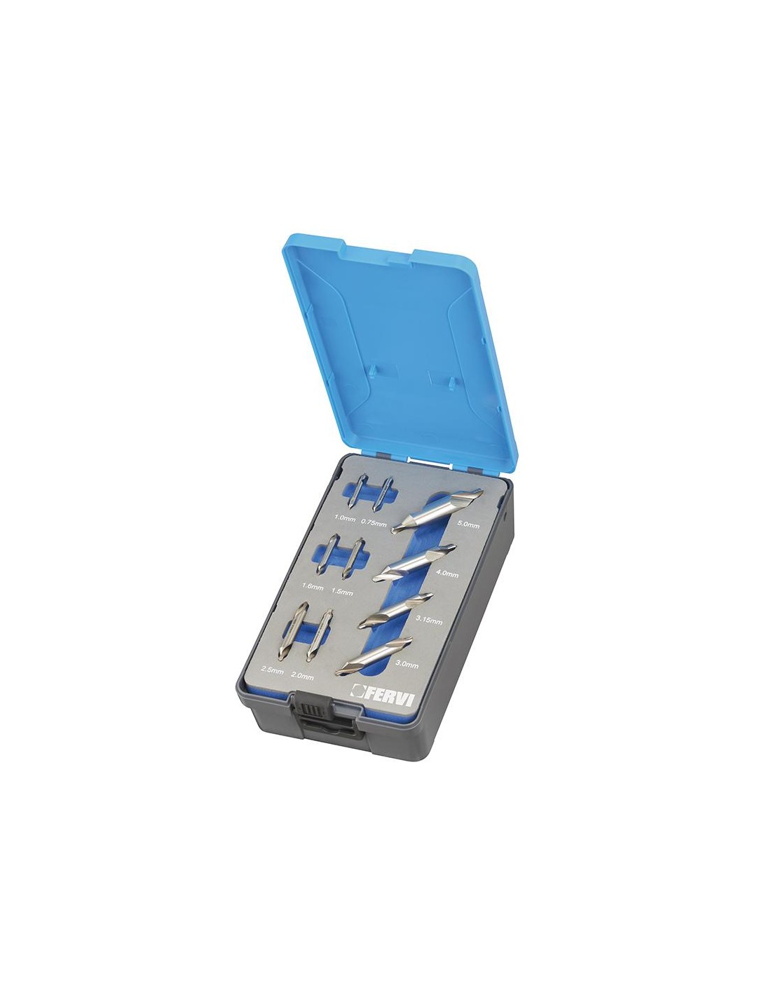 DIN 333, rettificata, con scanalature vaporizzate. Angolo conicità 60° Materiale di produzione acciaio super rapido (HSS). L’angolo di affilatura della cima della punta è di 60°. Ideale per una precisa perforazione centrale nei metalli. Gli utensili, in totale 10 pezzi, vengono forniti in una scatola compatta e resistente.
