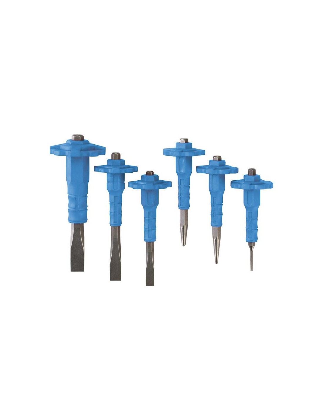 Questa serie di scalpelli, punzoni e bulino con paramano è un prodotto resistente e durevole, idoneo sia per un uso professionale che hobbistico. L’ambito d’applicazione ideale è la falegnameria, il modellismo e la meccanica. Il set viene spedito dall'utente in un contenitore resistente ed è composto da 3 scalpelli, 1 bulino, 1 cacciaspine conico e 1 cacciaspine cilindrico.