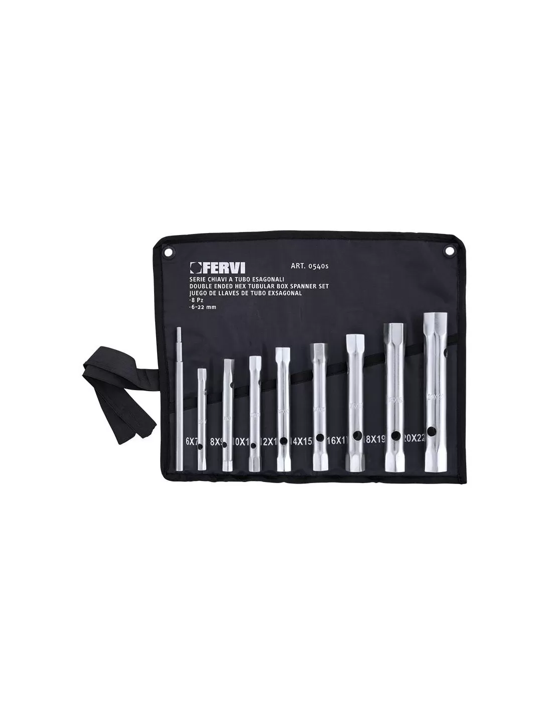 Tipo leggero, con spina di manovra a 3 diametri Chiavi realizzate in lega d’acciaio al cromo vanadio. Sono resistenti e possono essere utilizzate sia da hobbisti che da professionisti per operazioni di fissaggio di bulloni ed anche per la rimozione di queste. Le chiavi vengono custodite in una pratica borsa arrotolabile.