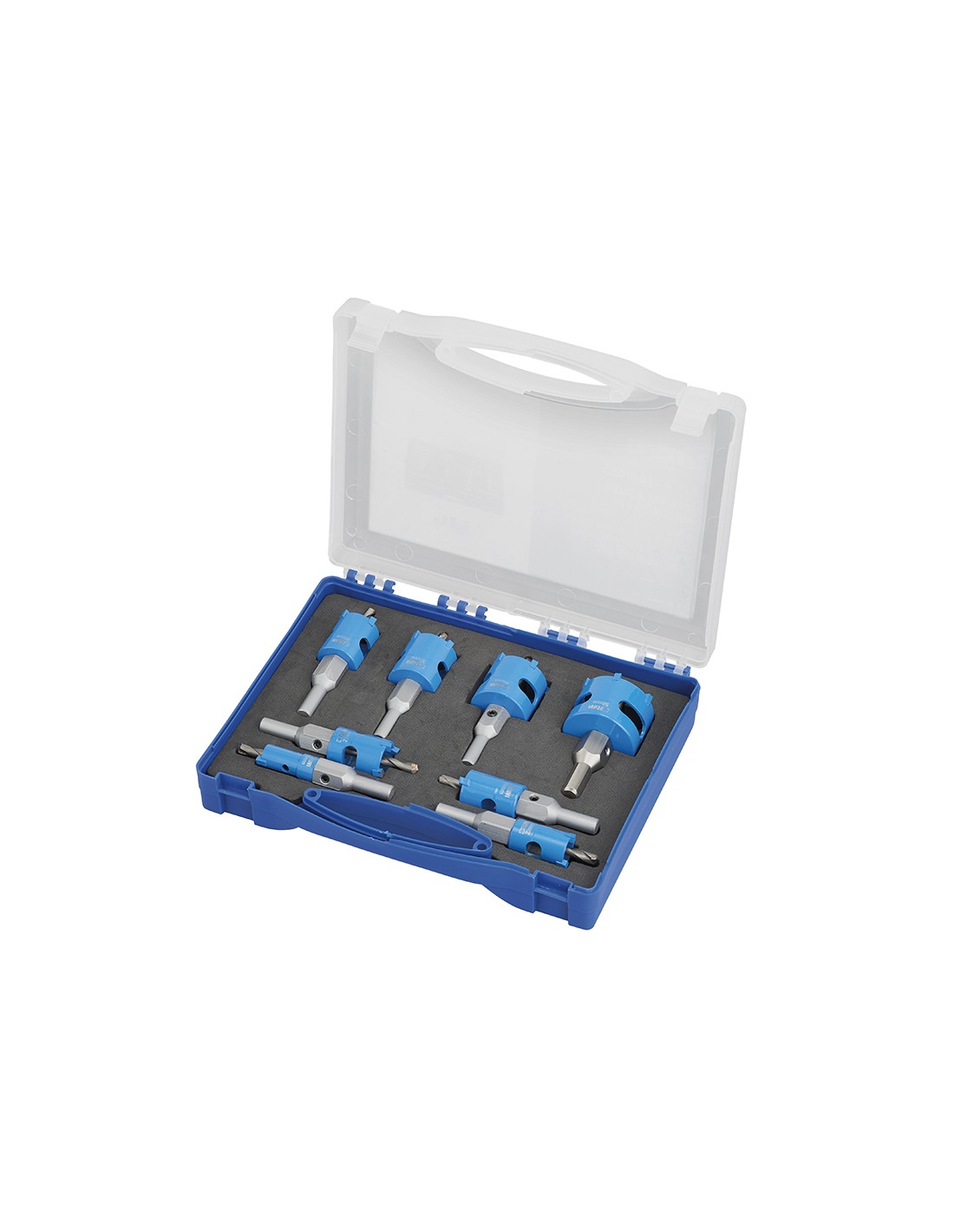 Per l'esecuzione di fori di medie e grandi dimensioni nel muro. Frese realizzate in acciaio super rapido con carburo di tungsteno HSS- HM. Il materiale garantisce elevata durezza, resistenza alla ruggine, robustezza e durata. Gli utensili, 8 pezzi, vengono forniti in una scatola di plastica compatta e resistente.