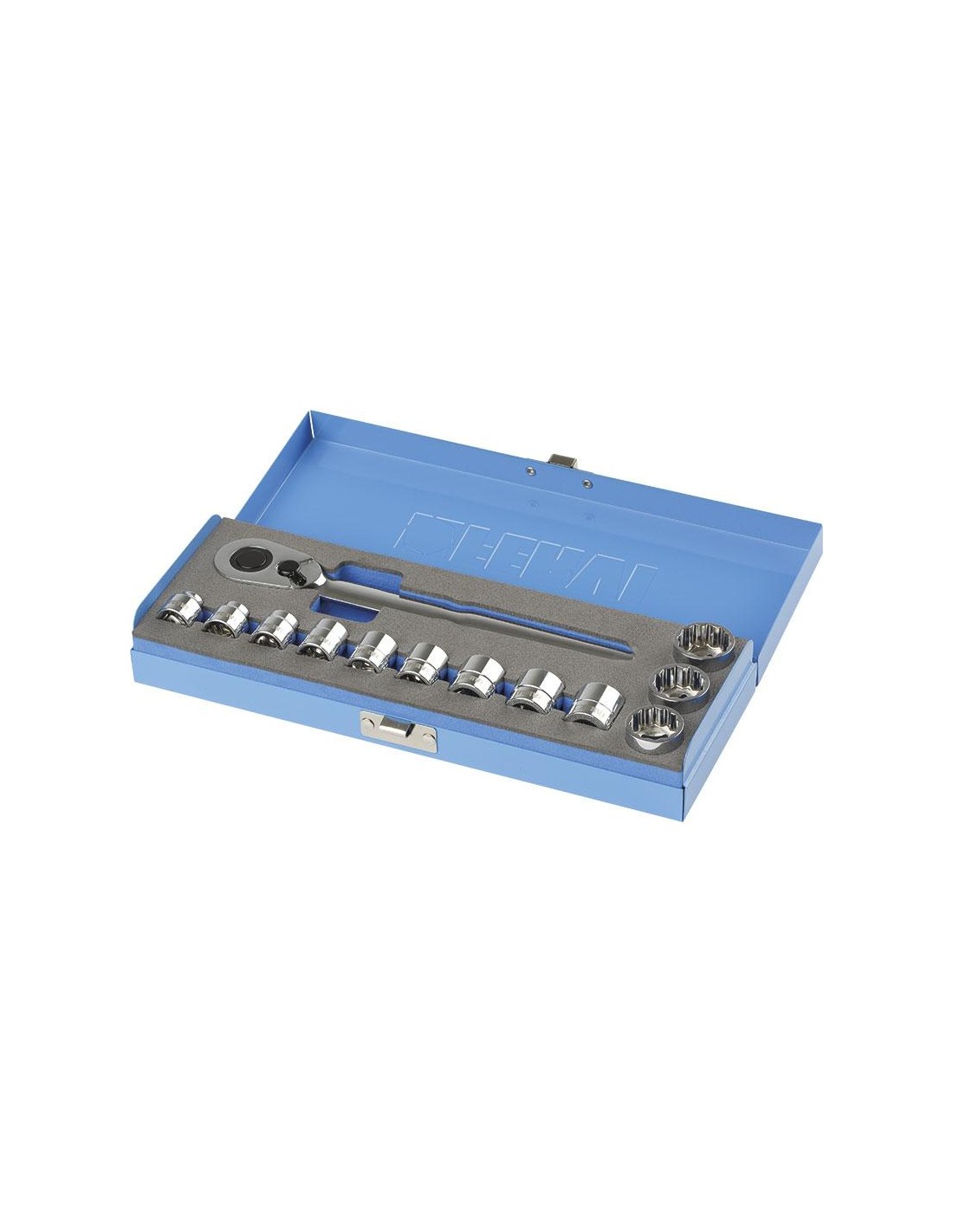 Composto da 12 bussole e 1 cricchetto reversibile ribassato a 60 denti, di altezza ridotta per poter operare in piccoli spazi Questo set contiene 12 utensili realizzati in acciaio cromo vanadio. Sono resistenti e hanno lunga durabilità . Le bussole possono essere utilizzate per lavori in officina ma anche per varie operazioni fai-da-te. Il set viene confezionato in una scatola elegante piccola di alluminio.