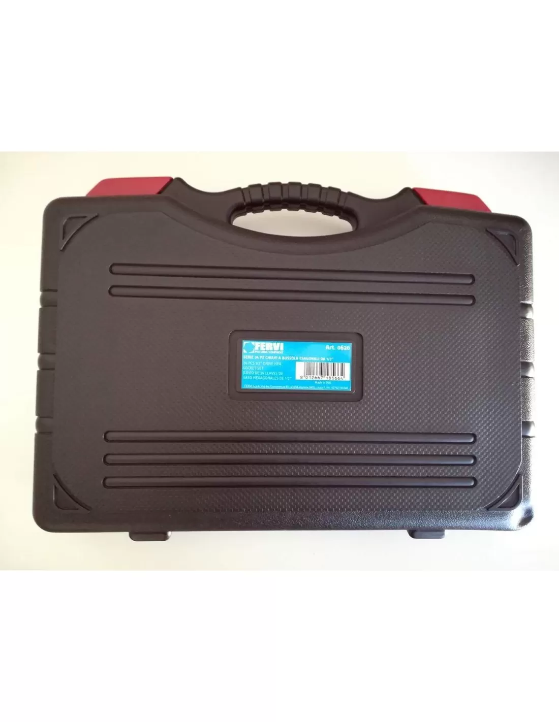 SERIE CASSETTA DI CHIAVI A BUSSOLA DA 1/2" 10-32 MM E ACCESSORI 24 PZ FERVI 0620