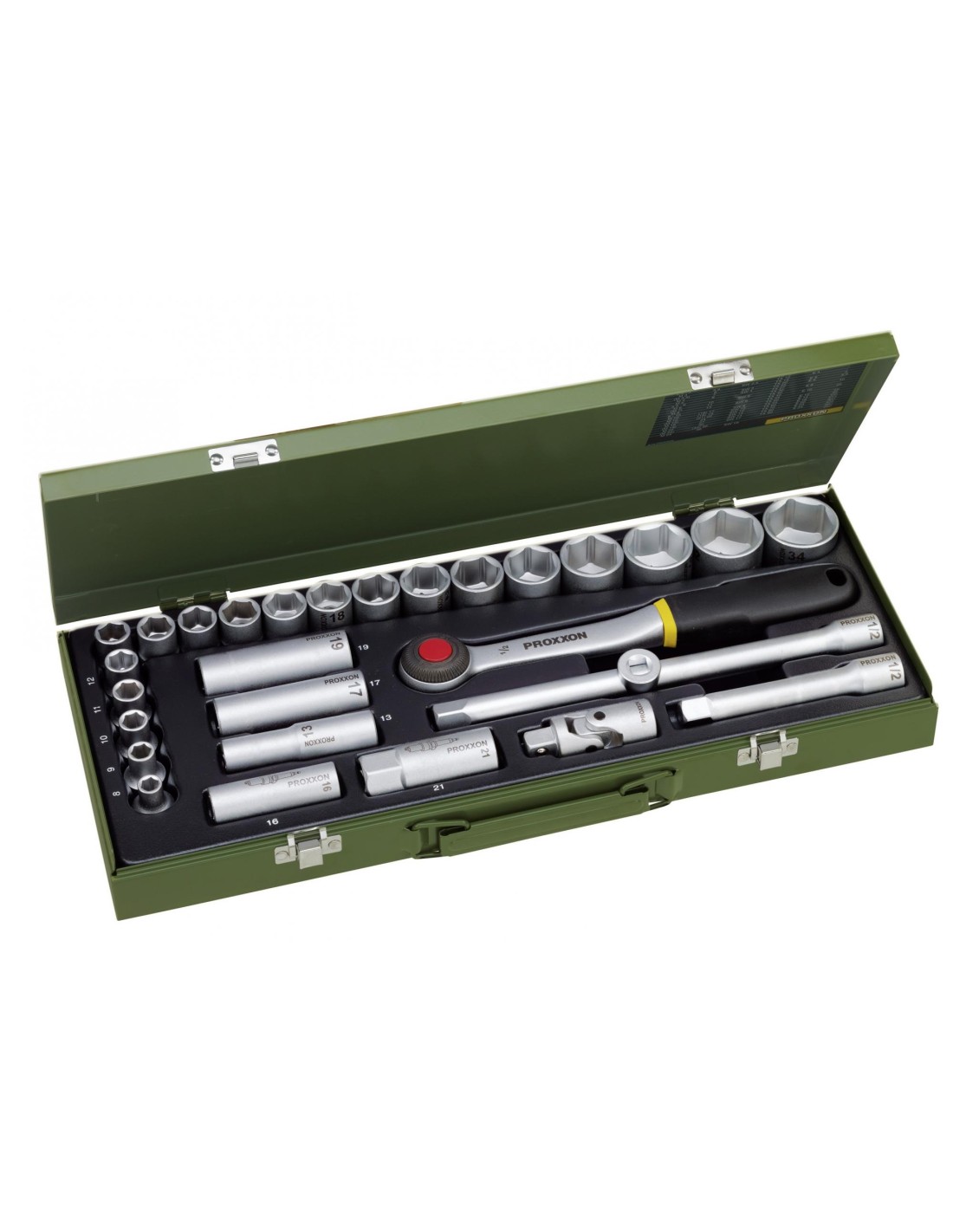SERIE DI CHIAVI A BUSSOLA DA 1/2"" E ACCESSORI 29 PZ PER LAVORI DI MECCANICA PROXXON 23000: