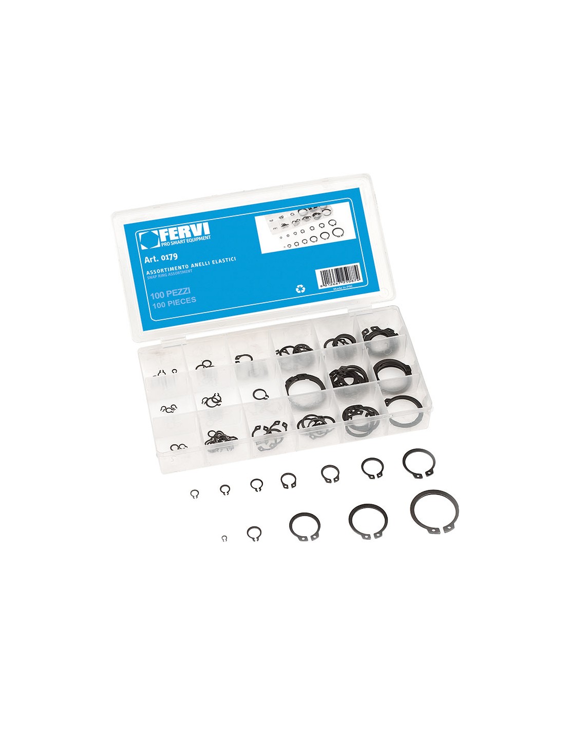 ASSORTIMENTO 100 ANELLI ELASTICI SEEGER FERVI 0179