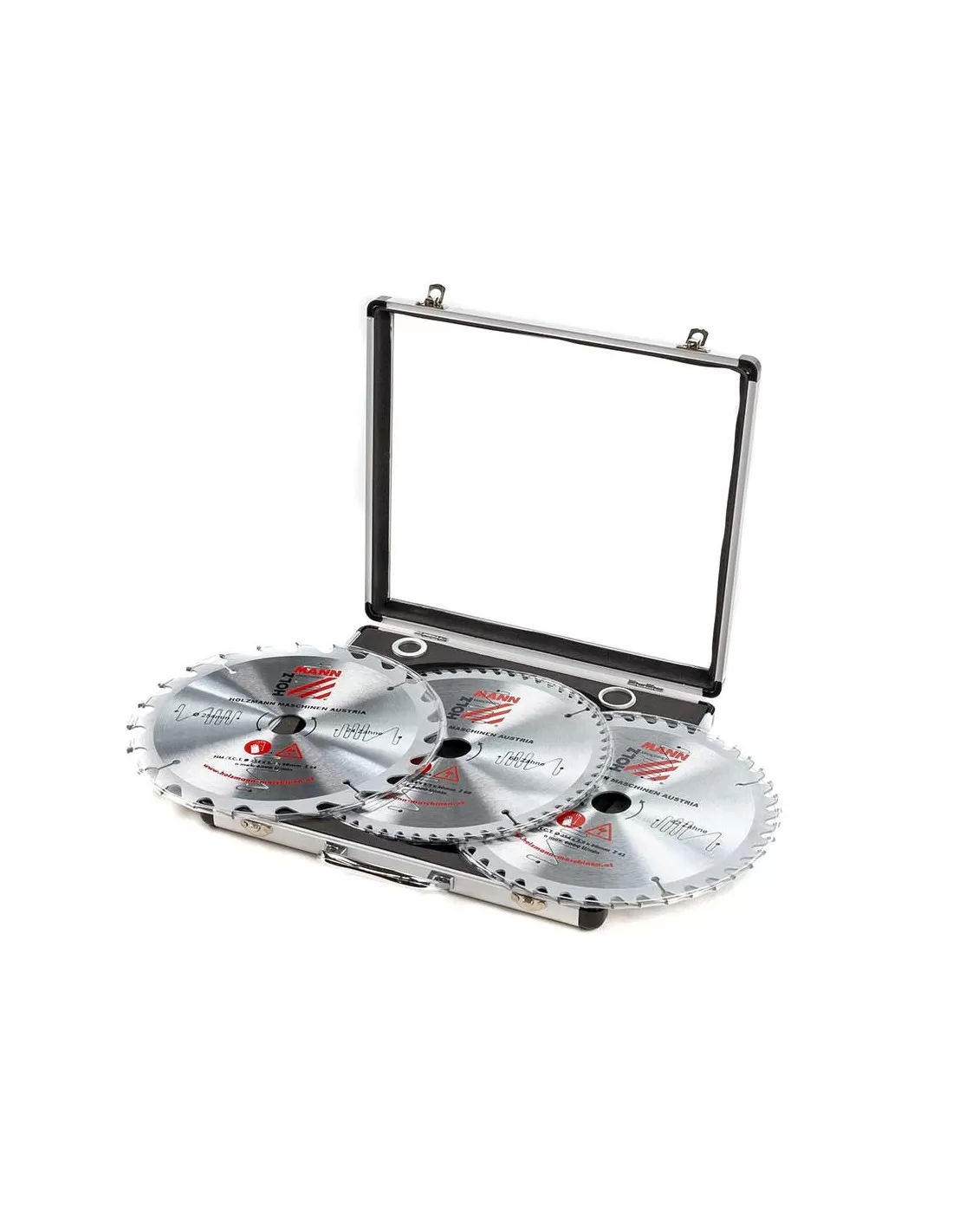 3 lame in metallo duro in una valigetta di alluminio; diversi passi dei denti per ogni applicazione.