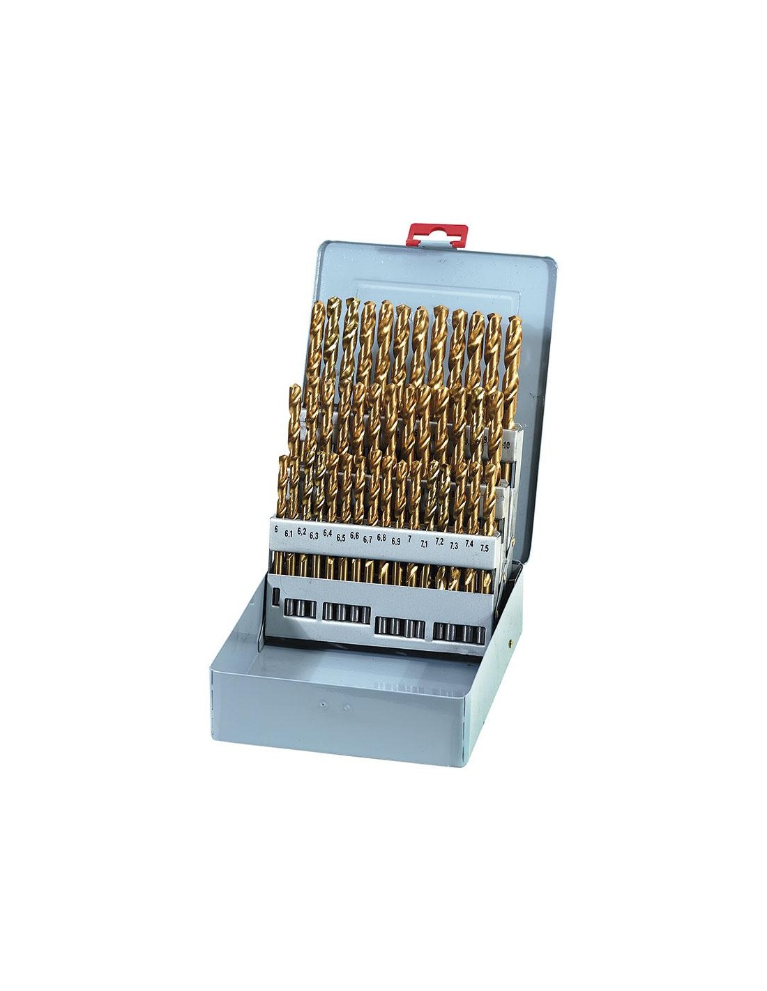 DIN 338/N, destra, lunga durata grazie al rivestimento in titanio. Materiale di produzione acciaio super rapido( HSS). Le punte sono rivestite con nitrato di titanio e La cima delle punte è affilata con un angolo 135°. Gli utensili, in totale 51 pezzi, vengono forniti in una cassetta compatta e resistente.