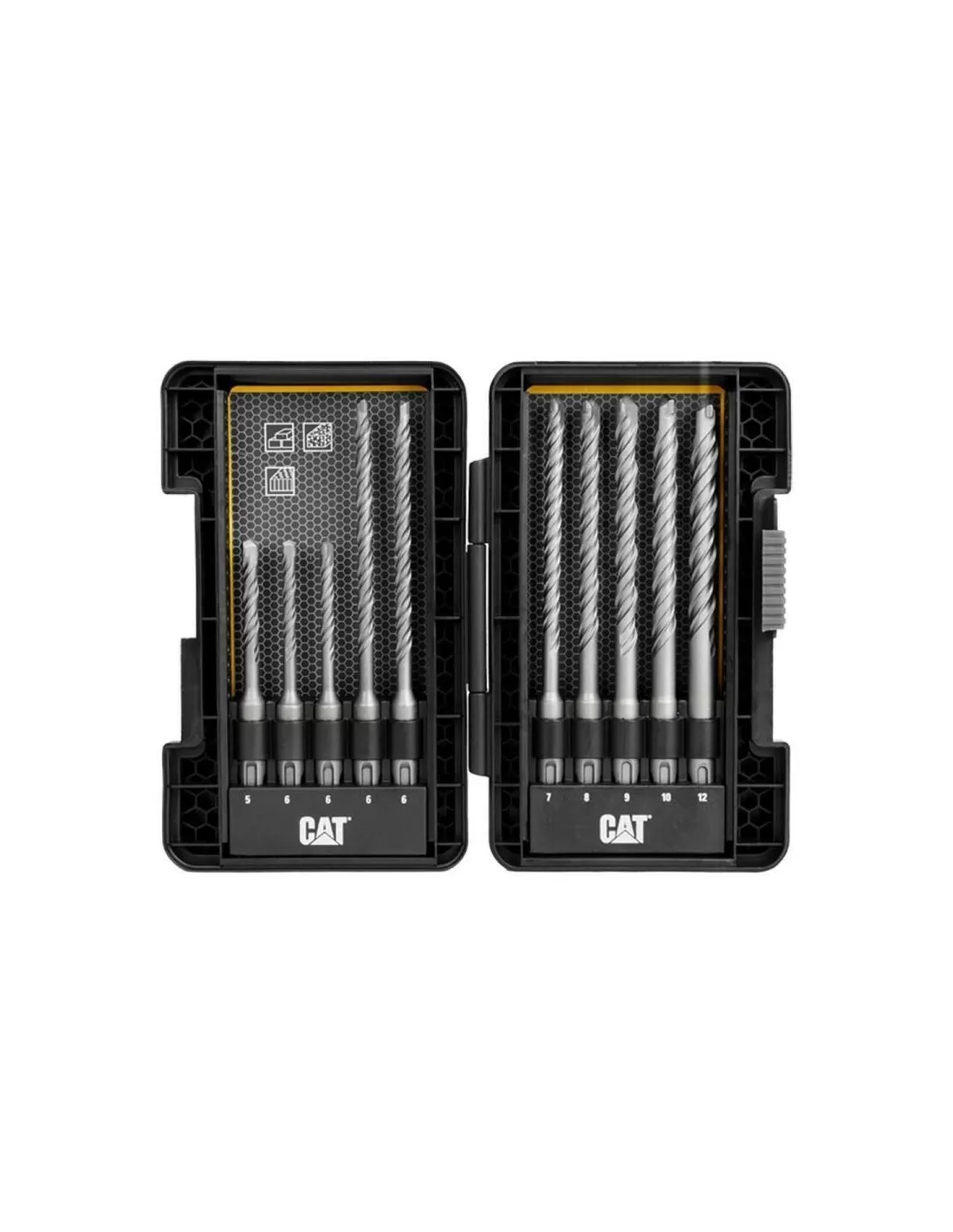 Set di punte da muro elicoidali SDS Plus. Possono essere utilizzate sia per i prodotti a marchio CAT, ma anche per altri brand che trattano elettroutensili.