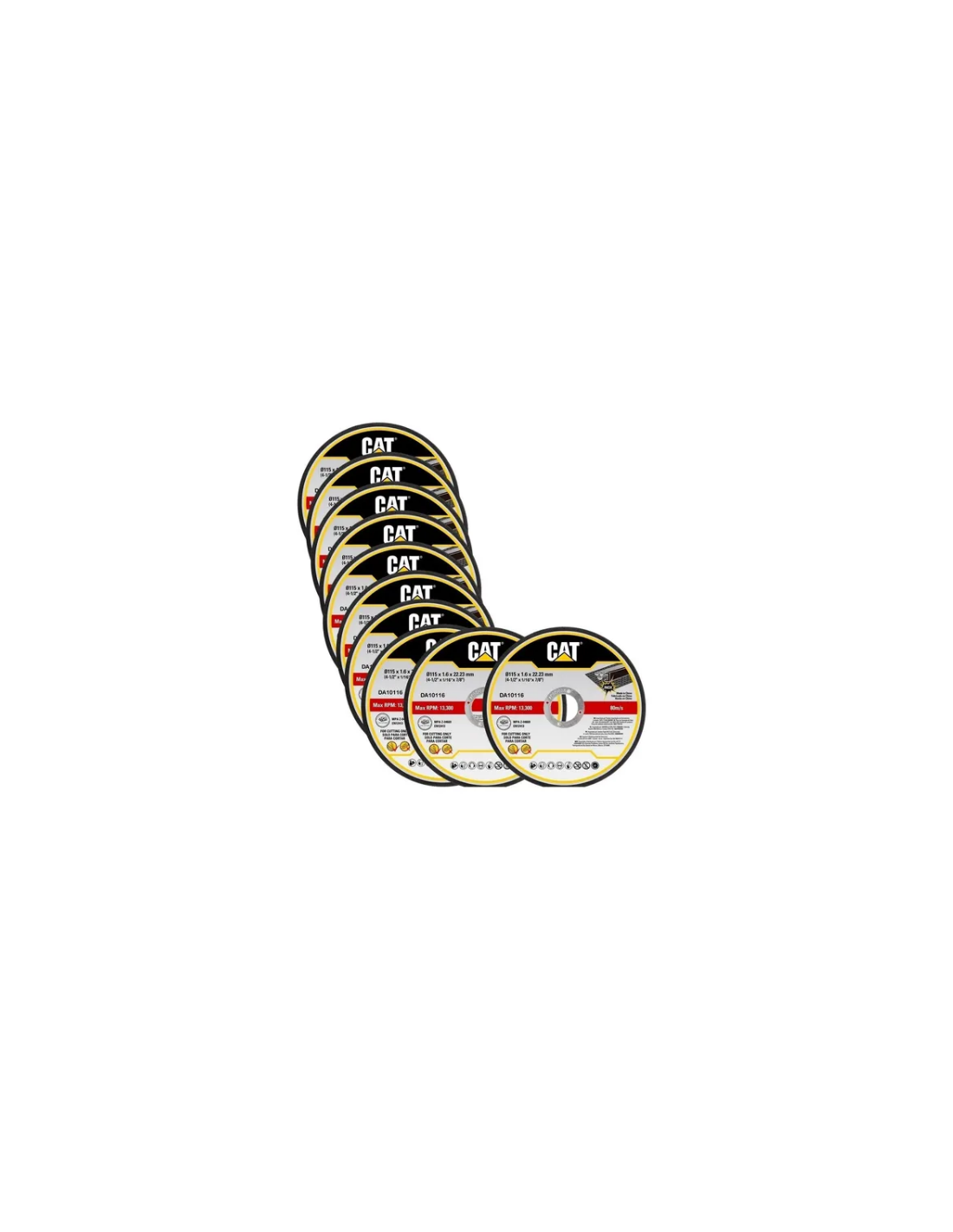 Il set da 10 dischi abrasivi CAT può essere utilizzato su metalli ma anche inox, adatti sia per l'edilizia che nel campo della saldatura.
