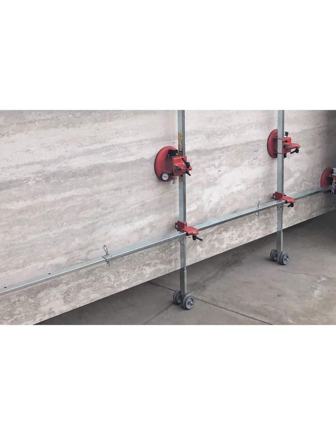 Realizzato in tubolari telescopici d’acciaio (unico sul mercato) poi galvanizzati garantisce anche alle lastre più “critiche” o sottili il massimo della rigidità evitando sbandieramenti o flessioni dannosi per la lastra ma soprattutto pericolosi per gli operatori (le lastre prima di essere posate possono essere sollevate, girate, messe in verticale, trasportate su scale ecc.).