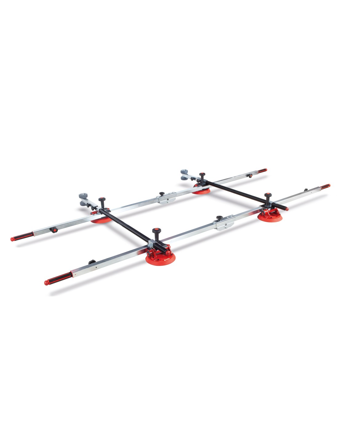 I manici telescopici ed i traversi mobili consentono il massimo grado di personalizzazione della configurazione coniugando dimensioni e forme della lastra con spazi ed area di lavoro.