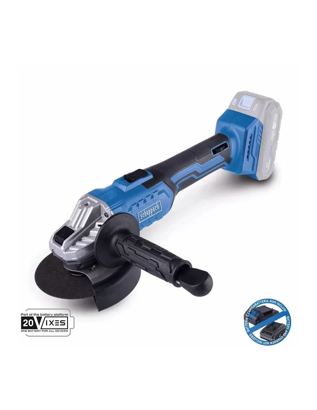 - Lavoro senza fili con la serie Scheppach IXES 20 Volt: tutte le batterie e i caricabatterie di questa serie possono essere combinati con la smerigliatrice angolare a batteria