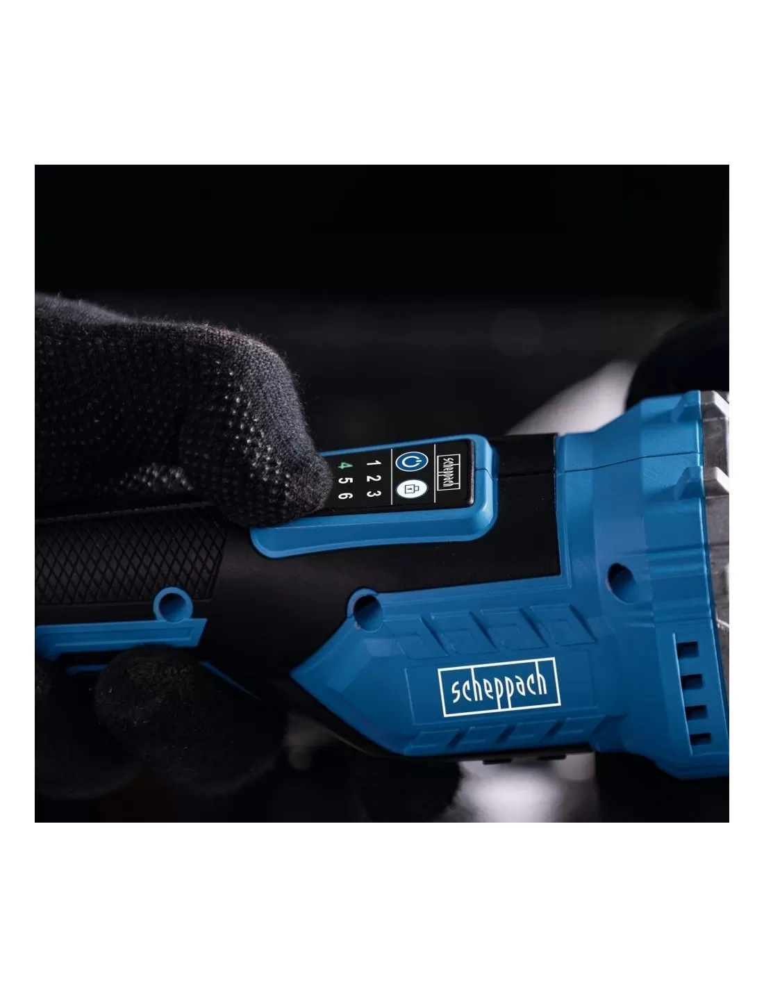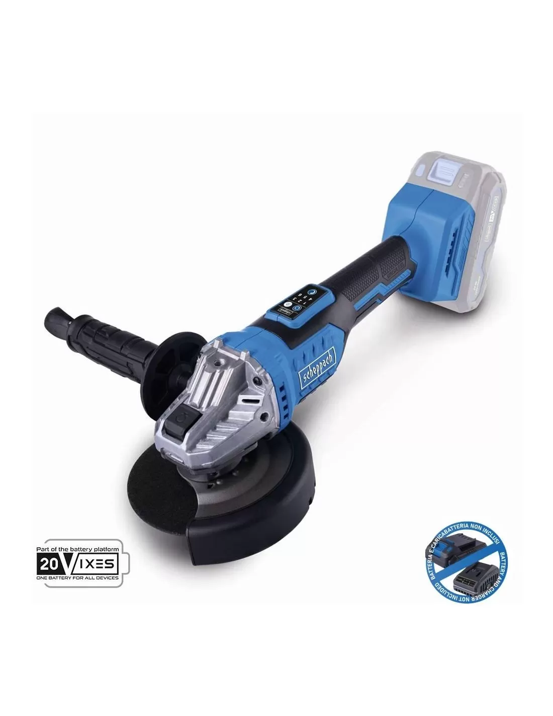 - Lavoro senza fili con la serie Scheppach IXES da 20 volt: tutte le batterie e i caricabatterie della serie di sistemi possono essere combinati con la smerigliatrice angolare a batteria