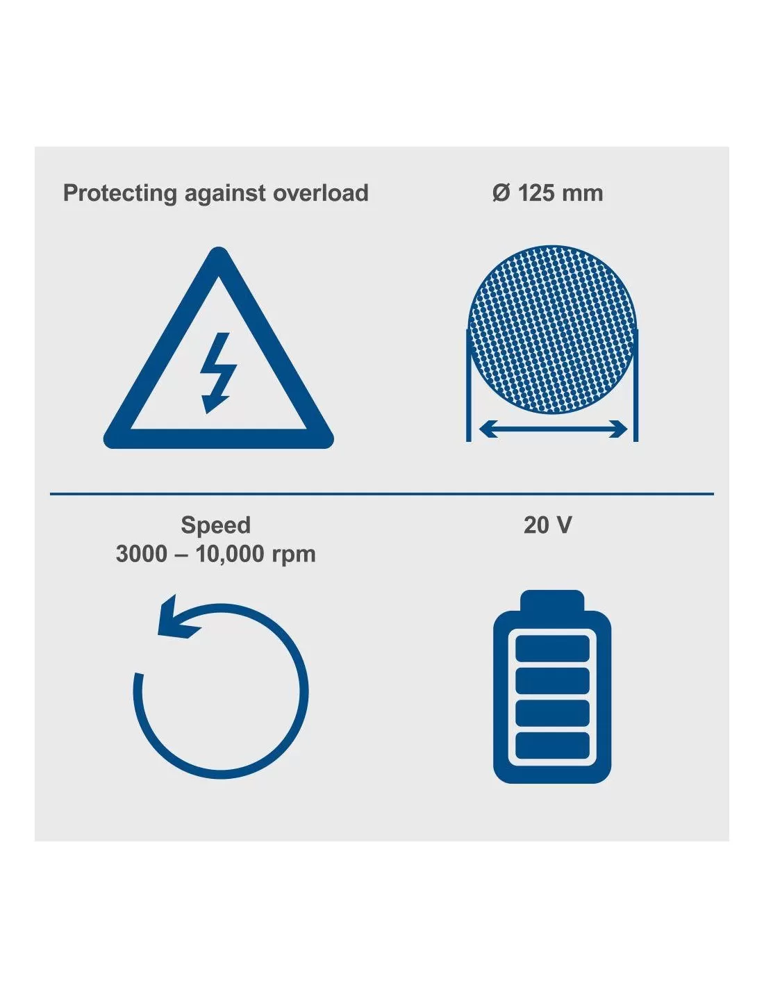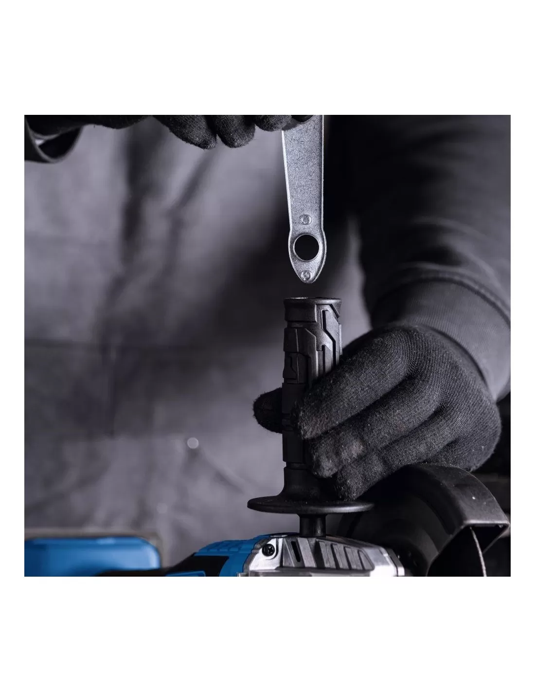 - Include 1 disco da taglio da 125 mm, 1 chiave di montaggio a due fori, 1 impugnatura anteriore a 3 posizioni