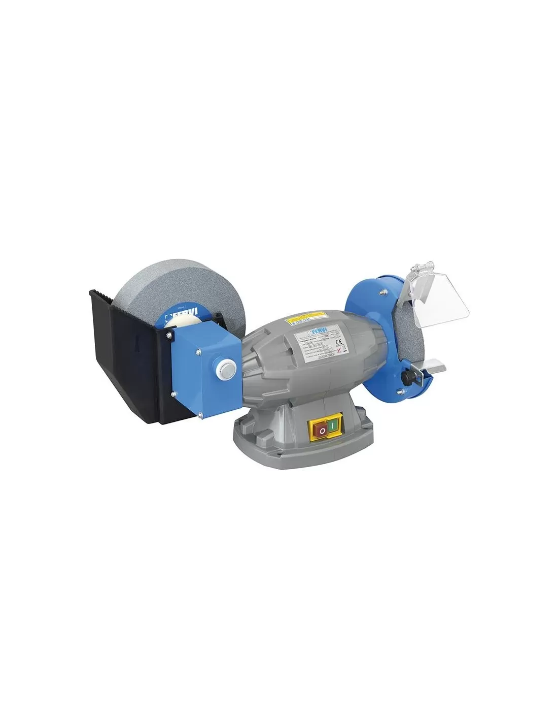 Con mola ad acqua e mola a secco, robusta e affidabile La smerigliatrice combinata da banco Fervi è una macchina molto semplice da utilizzare. La mola a secco serve per levigare, rettificare e/o sbavare materiali solidi e massicci (in particolare metalli e leghe metalliche) mediante abrasione. La mola ad acqua serve per l’affilatura di lame. Prima di iniziare l’affilatura, verificare la presenza dell’acqua di raffreddamento nella vaschetta (la mola deve essere immersa per almeno 1 cm). Schermo di protezione per la mola a secco. Questa macchina è facile da utilizzare. I pulsanti di funzionamento, start e stop, sono facilmente riconoscibili e posizionamento fuori dalle zone di lavorazione. Questa smerigliatrice è leggera e facile da trasportare a mano. Vengono forniti dei bulloni per il fissaggio alla superficie di appoggio: in questo modo vengono evitati piccoli spostamenti dovuti alle vibrazioni della macchina. La macchina è anche dotata di fori di aspirazione posizionati nella parte posteriore dei ripari a protezione degli utensili.