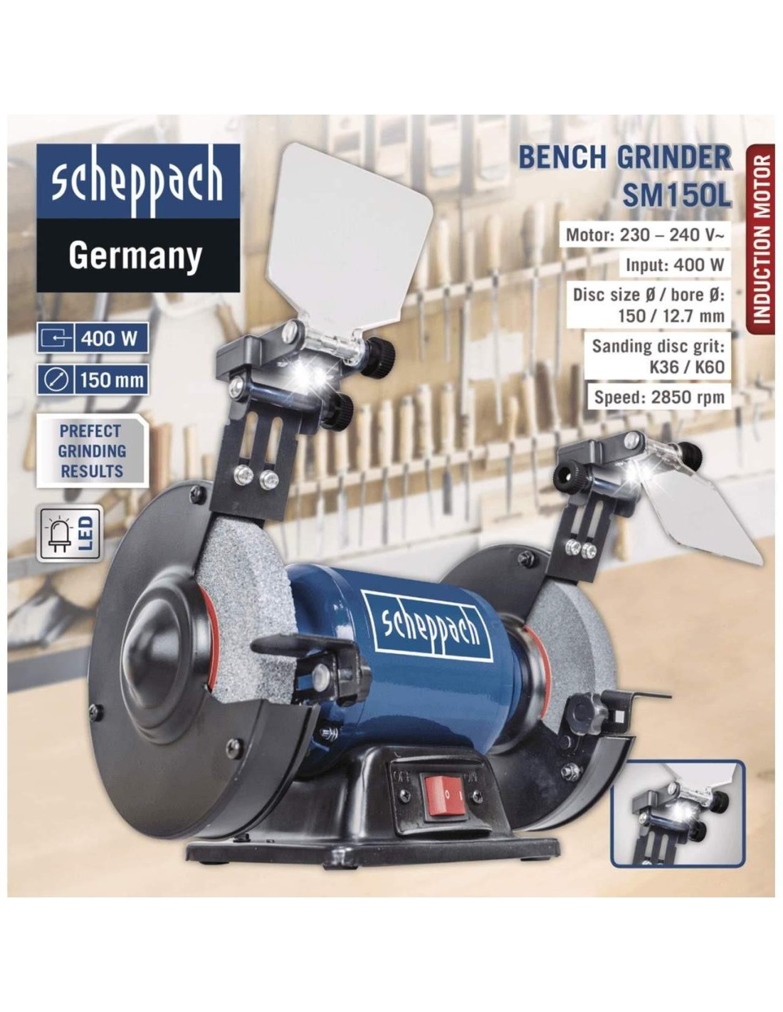 SMERIGLIATRICE DA BANCO DA 6" ø150 SCHEPPACH SM150L LUCE LED 400W: