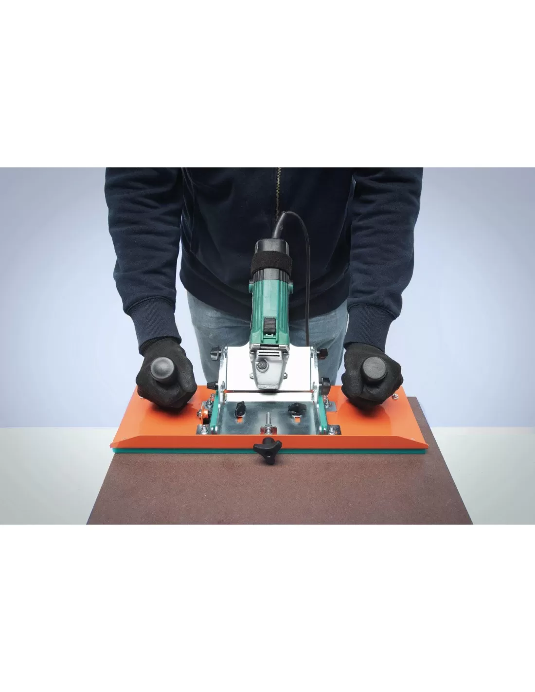 Profondità di smusso regolabile, con altezza di taglio massima di 21 mm, copertura del disco con aspirazione della polvere.