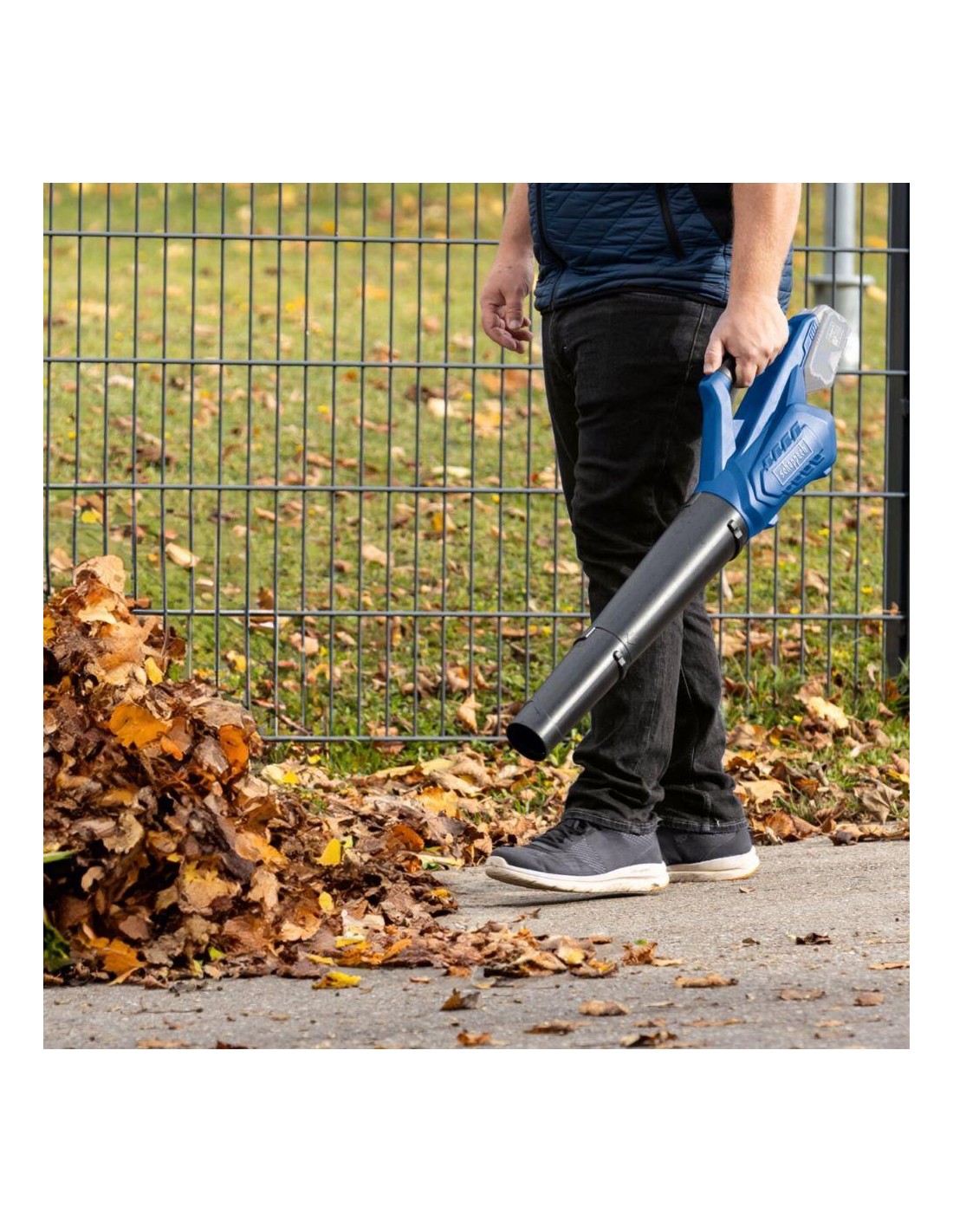 Il soffiatore per foglie a batteria Scheppach C-BL700-X è ideale per soffiare via foglie, erba tagliata o altri detriti da vialetti, cortili o marciapiedi. Il ventilatore assiale garantisce maggiore potenza e risultati ottimali. L'elevata velocità dell'aria, fino a un massimo di 155 km/h, e la portata d'aria di 516 m3/h, consentono un rapido avanzamento del lavoro. Il cannello è divisibile e rimovibile, viene fissato tramite una chiusura rapida senza il bisogno di utilizzare attrezzi.