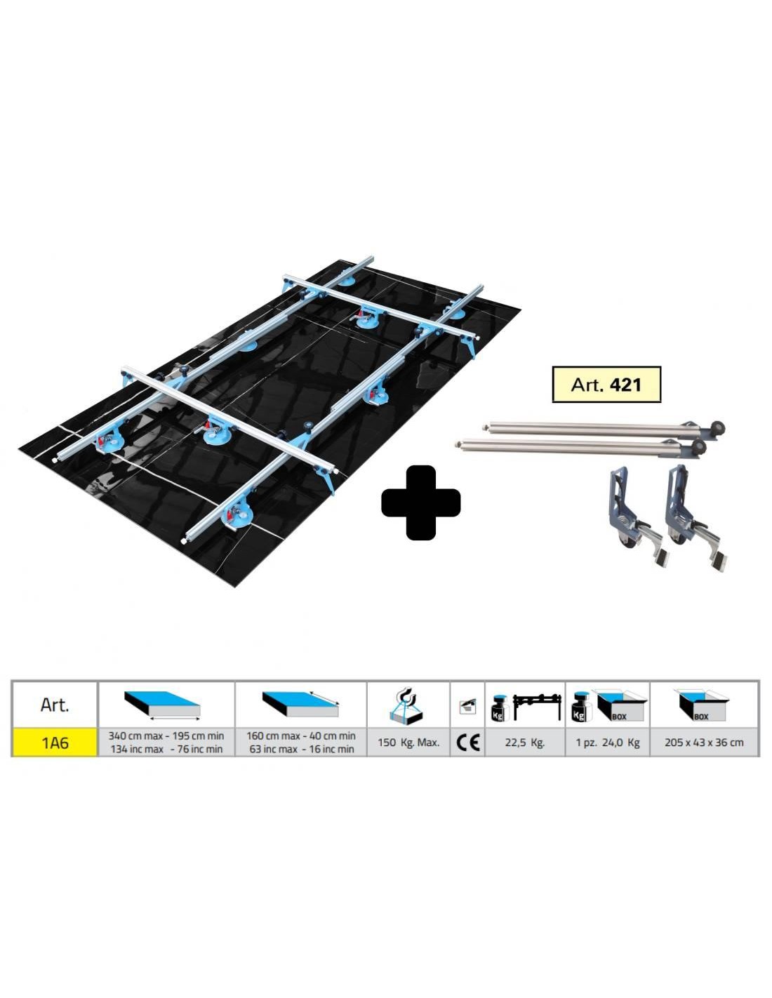 SIGMA 1A6: Sollevatore KERA-LIFT 340x160 cm. completo con 8 ventose a leva con vuotometro Pro-Grip Ø160 + 8 protezioni ventose + 4 sicure anticaduta