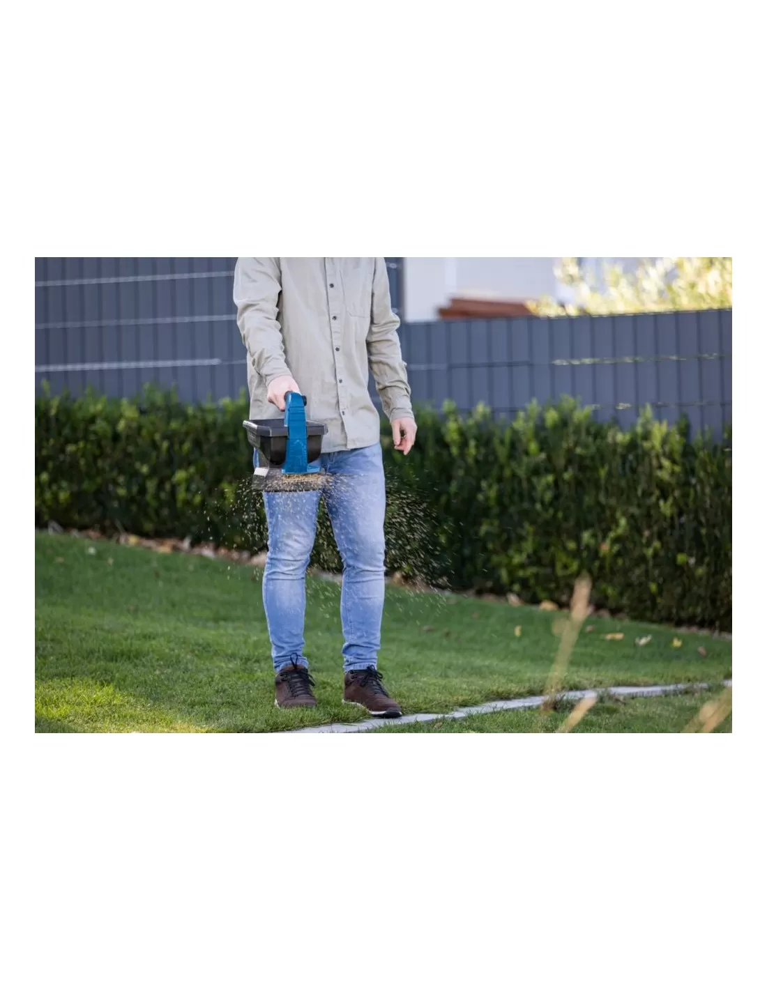 Il compatto spargiconcime manuale a batteria C-GSP800-X di Scheppach può essere utilizzato tutto l'anno in giardino e cortile. Con una larghezza di spargimento massima di 5 metri, il pratico spargiconcime è ideale per concimare, seminare o spargere specificamente sale stradale su tutti i tipi di superfici, come erba, neve o terra. Con un grande contenitore di 3,5 litri può coprire una superficie di circa 800 m2.