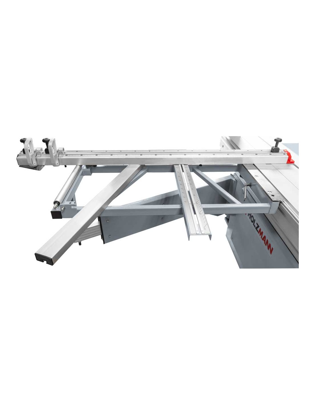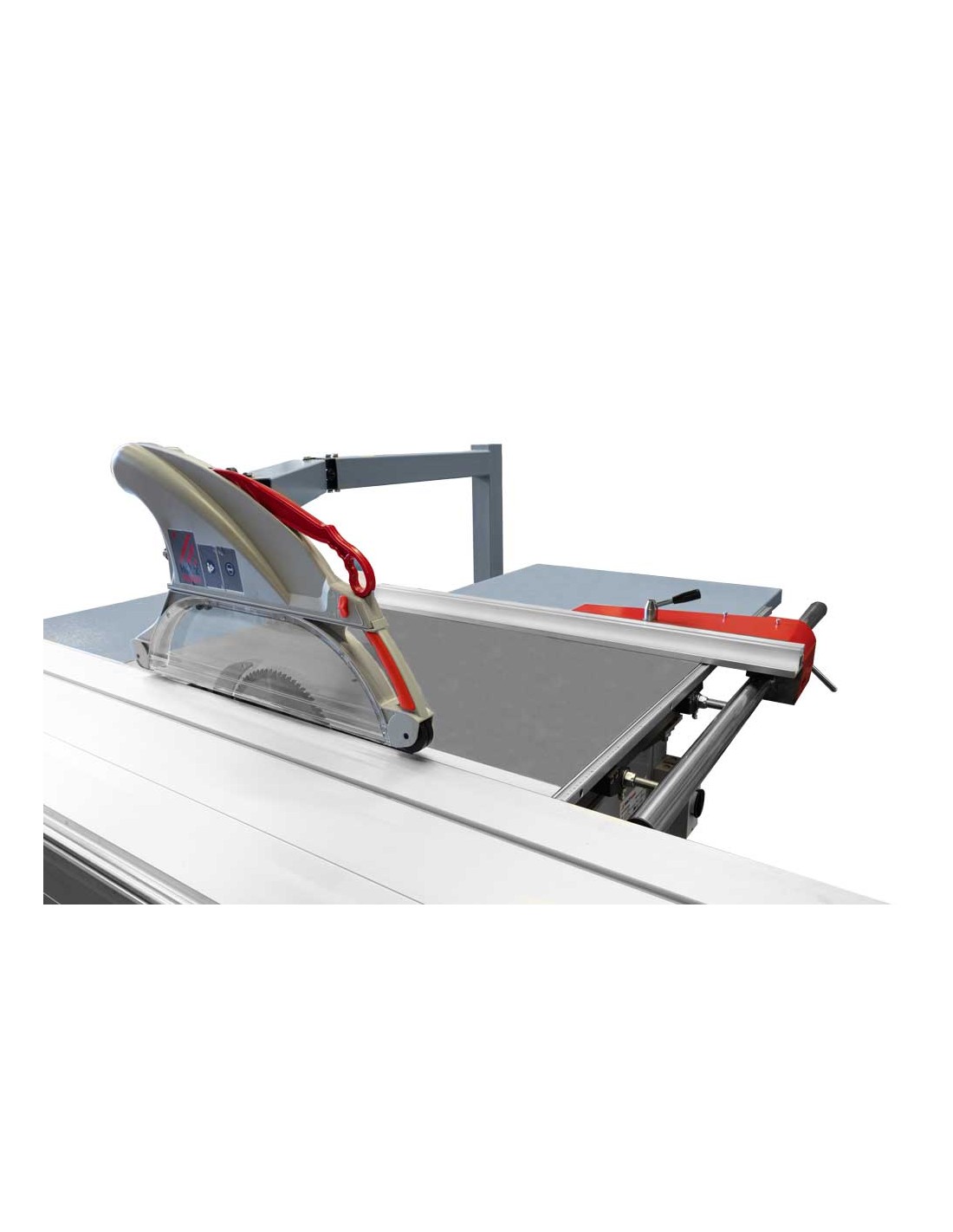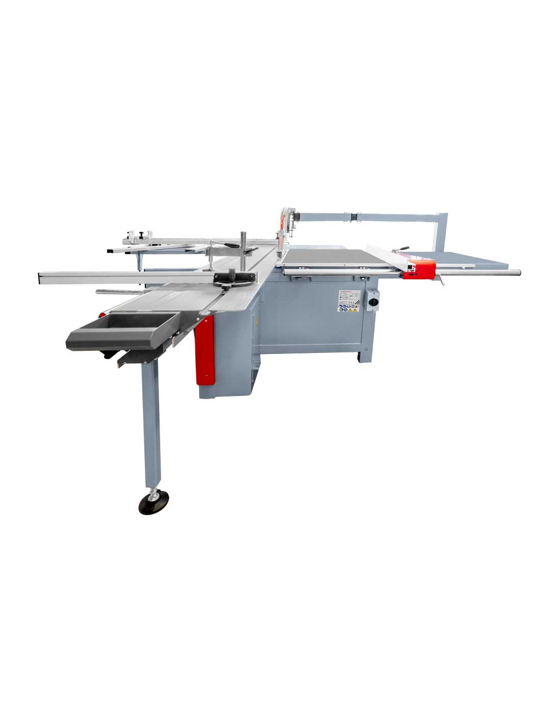La sega circolare HOLZMANN FKS400V32TOP_400 con tavolo scorrevole da 3,2 m, gruppo incisore (regolabile in altezza e lateralmente), lama principale con regolazione in altezza e angolazione, prolunga del tavolo e braccio a bandiera: in breve, la sega perfetta per il taglio di pannelli nella vostra falegnameria.