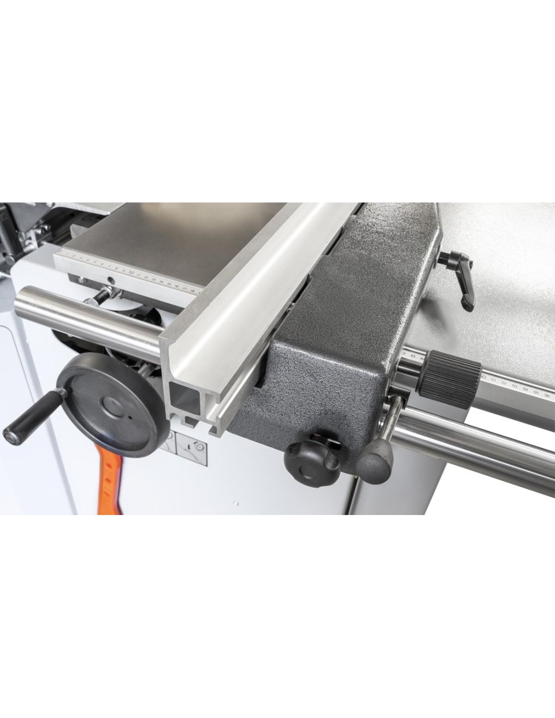 La squadratrice con sega circolare e tavolo scorrevole FKS315V1200 400V ha un tavolo scorrevole in alluminio e tavolo stabilizzatore ideale per la lavorazione di pezzi e il taglio di pannelli molto grandi.
