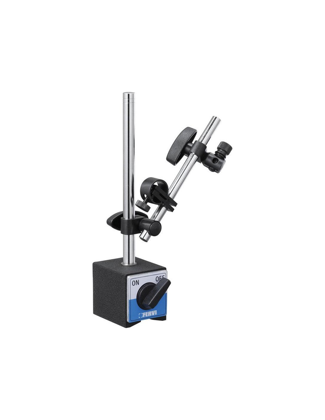 Con regolazione micrometrica, colonna robusta e braccio trasversale regolabile. base magnetica con appoggio prismatico e commutatore