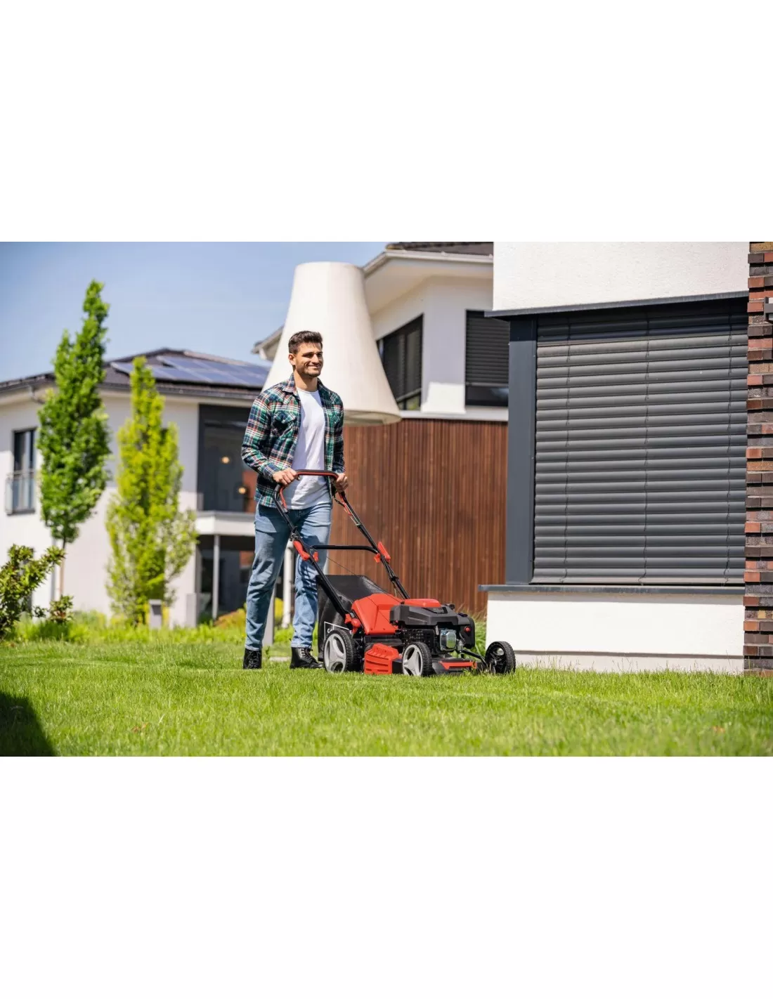 Il potente motore a benzina con i suoi 6 HP rende semplice ogni sfida, sia che si tratti di erba bagnata o molto alta.