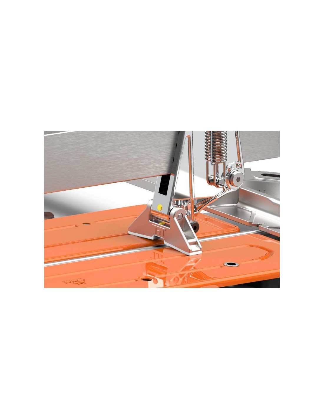 Carrello in alluminio provvisto di due cuscinetti a sfera regolabili per una perfetta scorrevolezza e massima precisione. Il carrello è dotato di Quick Start System: la presenza di molle rendono il manico sempre pronto al taglio.