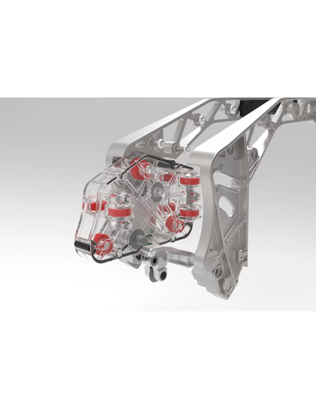 Molto facile da trasportare grazie a ruote di serie e impugnatura ergonomica. Base grande e robusta, realizzata con profili in alluminio per ottenere rigidità e leggerezza allo stesso tempo.